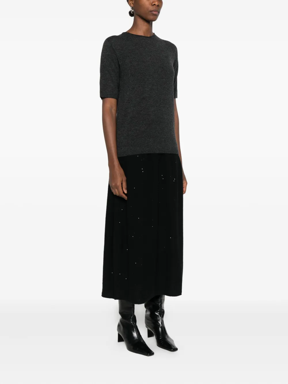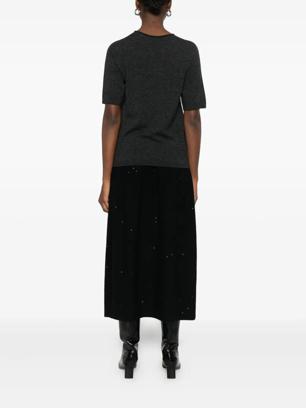 темно-серая тонкая трикотажная футболка с круглым вырезом и короткими рукавами