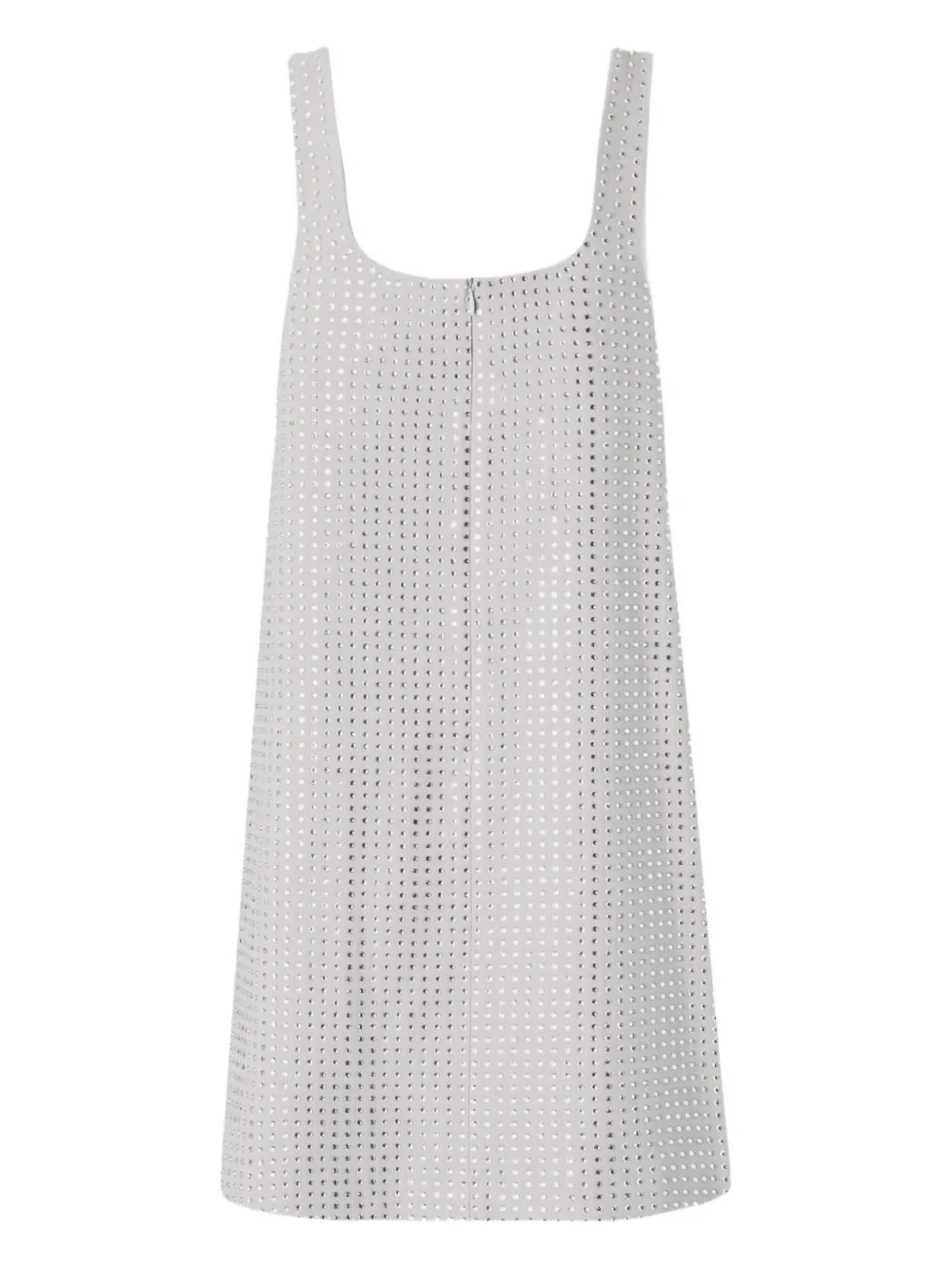 платье мини длины «пингвин» серого цвета с перфорированным дизайном, квадратным вырезом, без рукавов, с потайной застежкой-молнией сзади