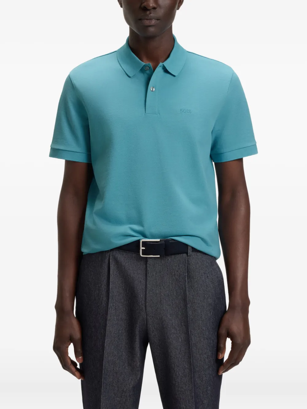 Рубашка поло с вышитым логотипом Boss, синий