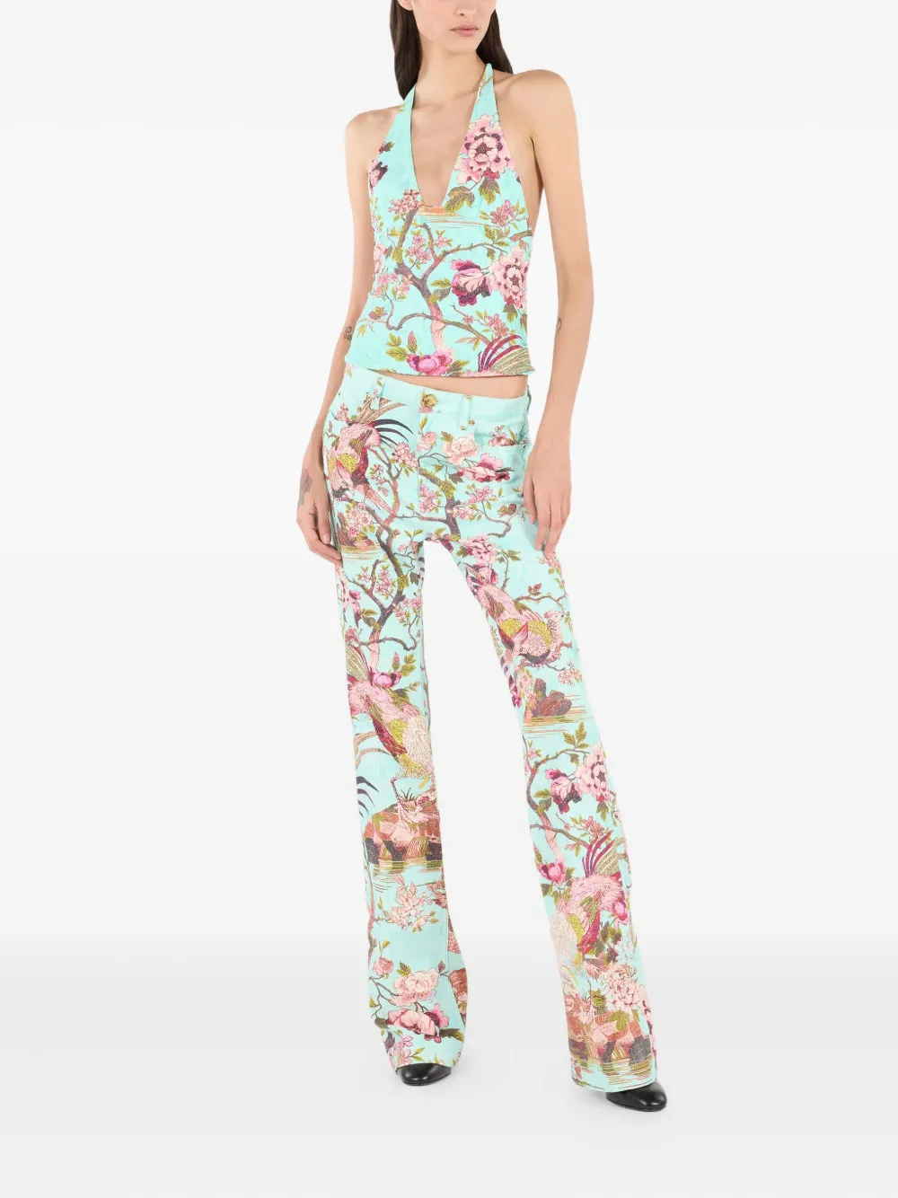 Топ с цветочным принтом Roberto Cavalli, зеленый