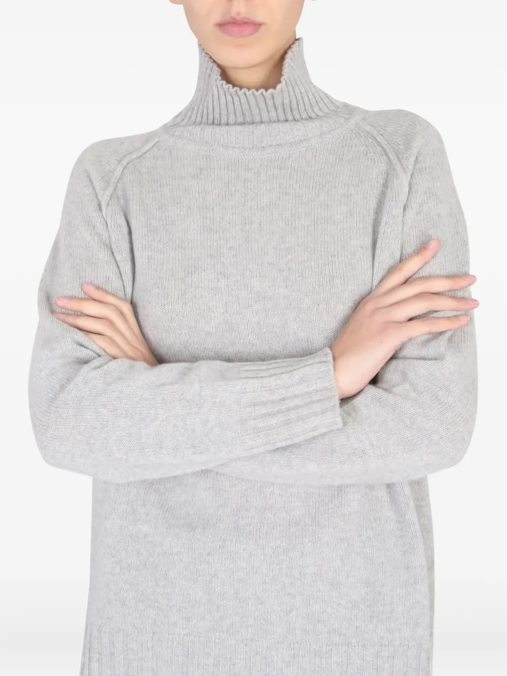 серый гольф с воротником-стойкой, ребристыми краями, длинными рукавами и рукавами-реглан