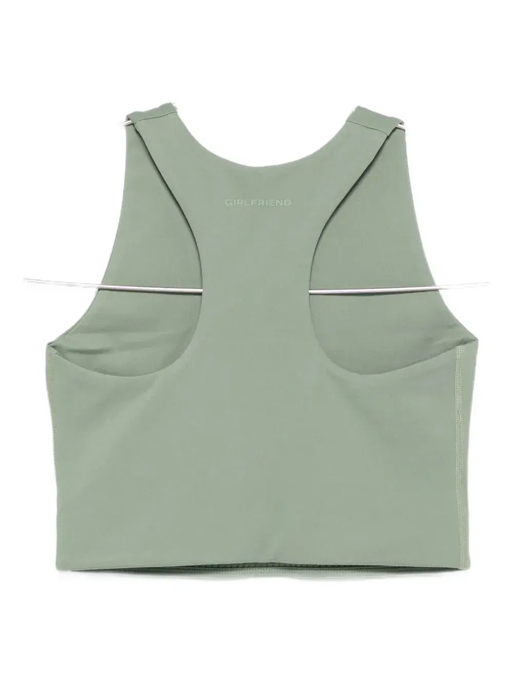 зелёная майка с круглым вырезом и спортивной спинкой без рукавов