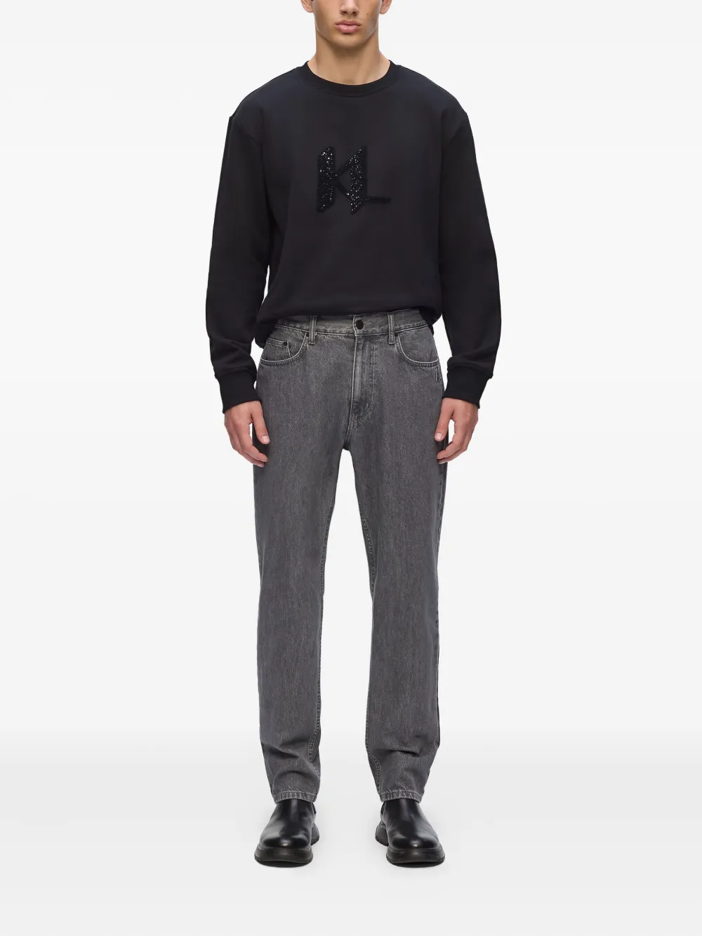 Джинсы с тисненым логотипом Karl Lagerfeld, серый