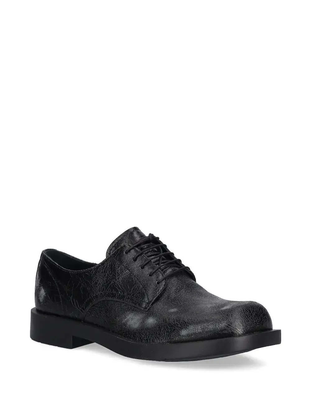 черная с эффектом потертости, шнуровка, плоская подошва, круглый носок