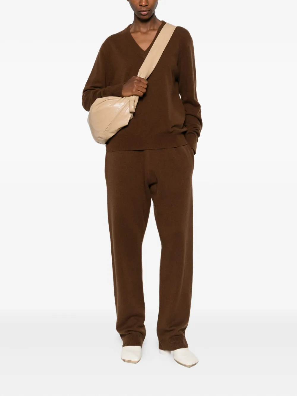 коричневый V-образный вырез, длинные рукава, манжеты и низ в рубчик