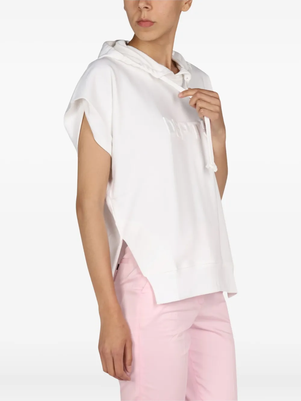 белый худи с короткими рукавами, разрезами по бокам, кулиской и выпуклой надписью