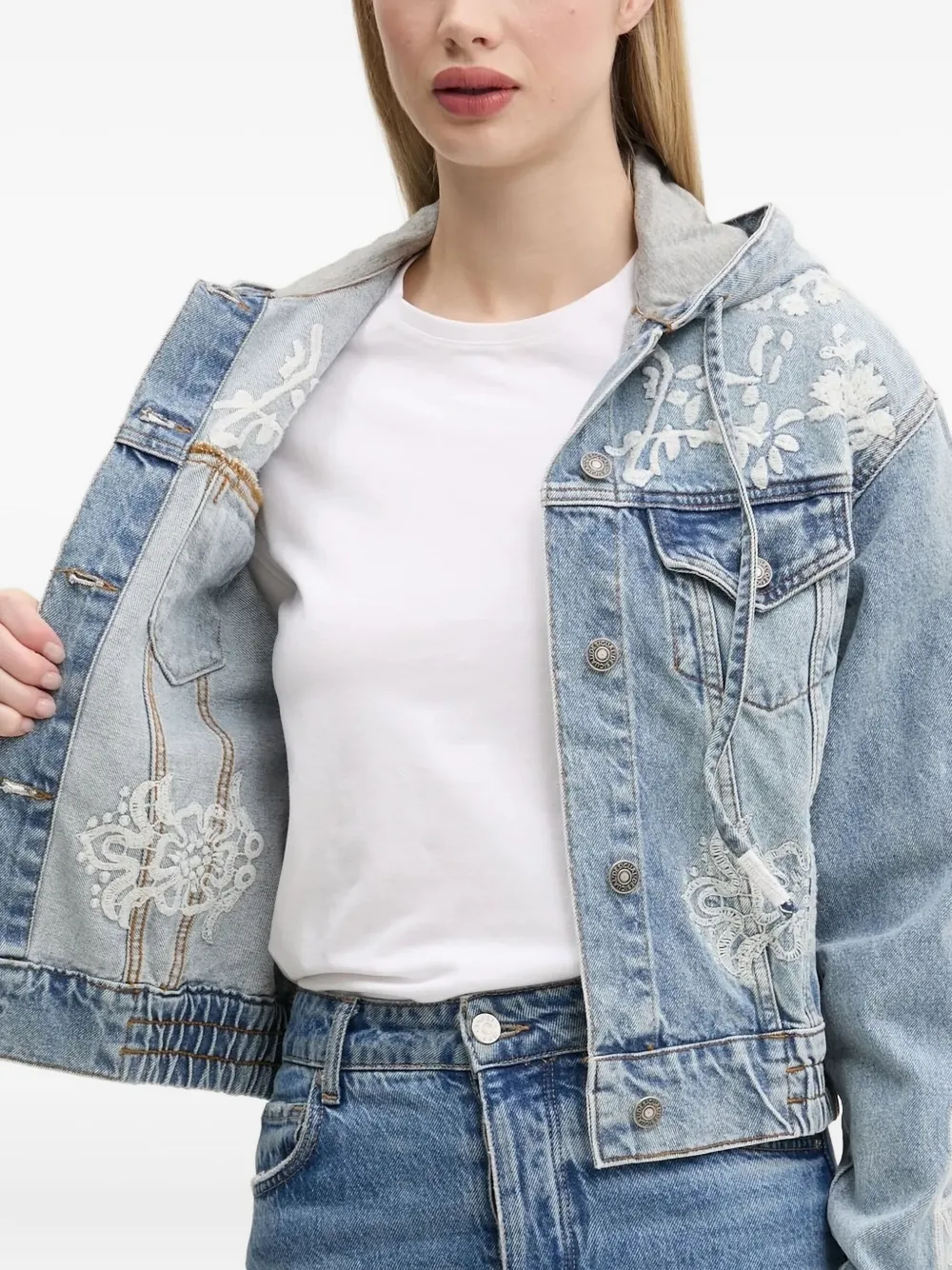 Джинсовая куртка с капюшоном и вышивкой Desigual, синий