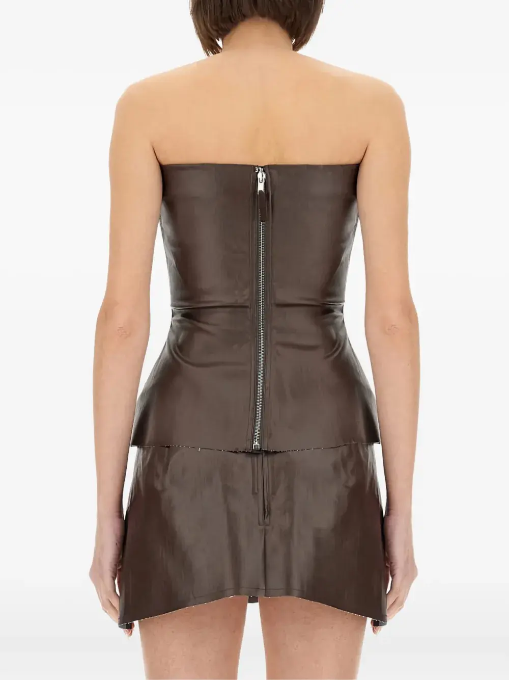 коричневый корсет без бретелек с застежкой-молнией, панельным дизайном и внутренним бюстье