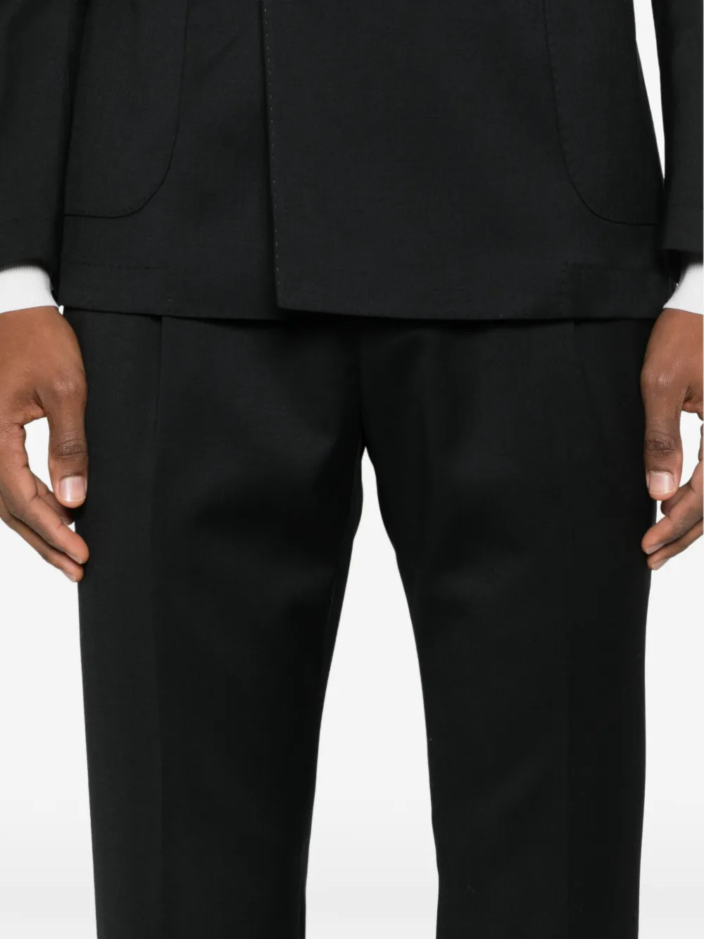 чёрный двубортный с накладными карманами