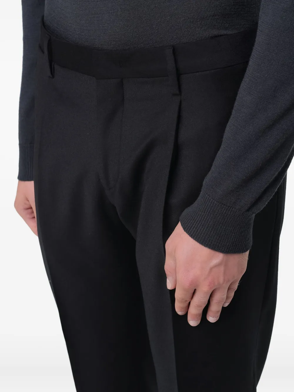 черные шлевки, передние складки, скрытая застежка