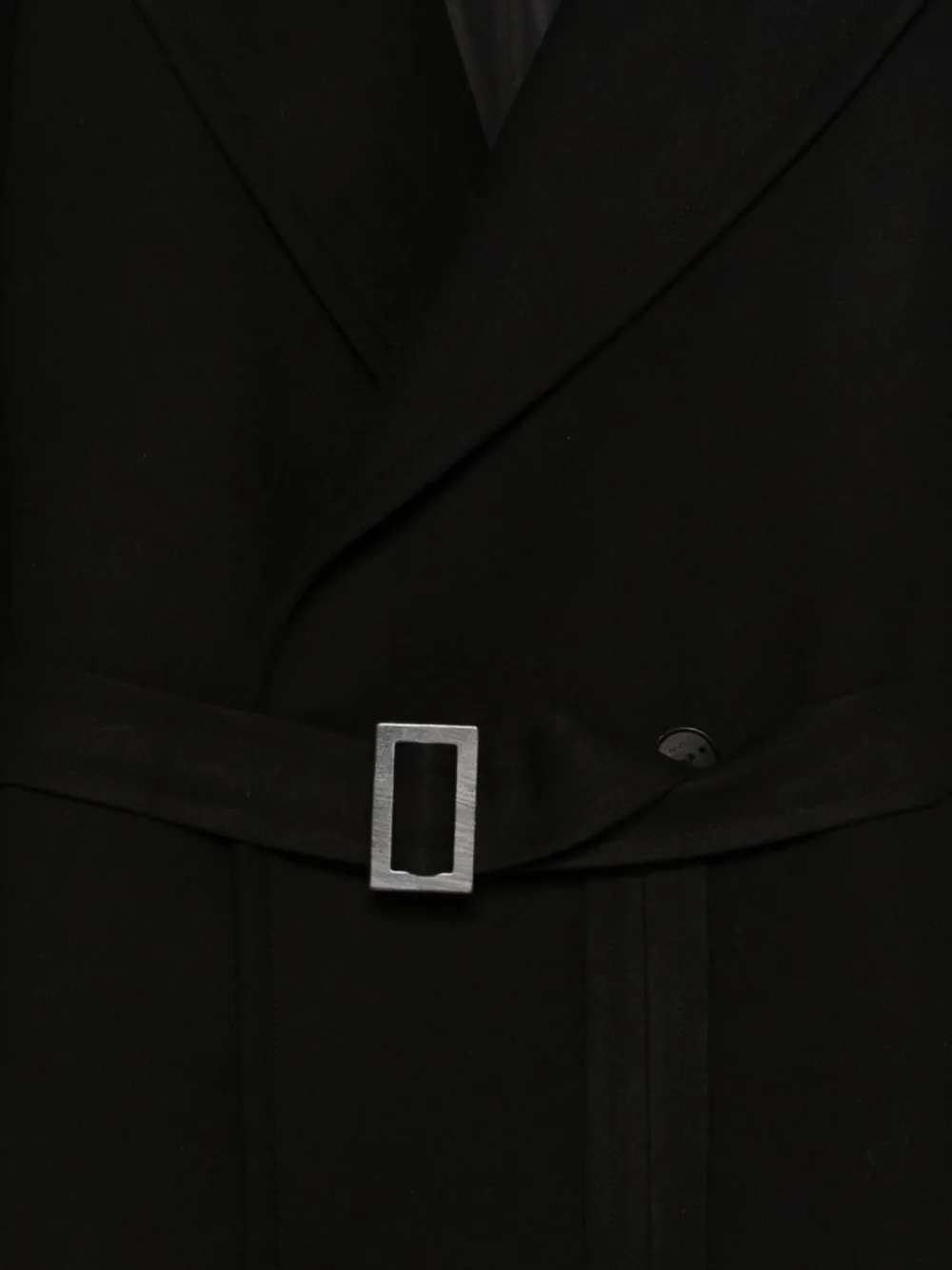 черный пояс, застежка на пуговицы, длинные рукава, лацканы с вырезом