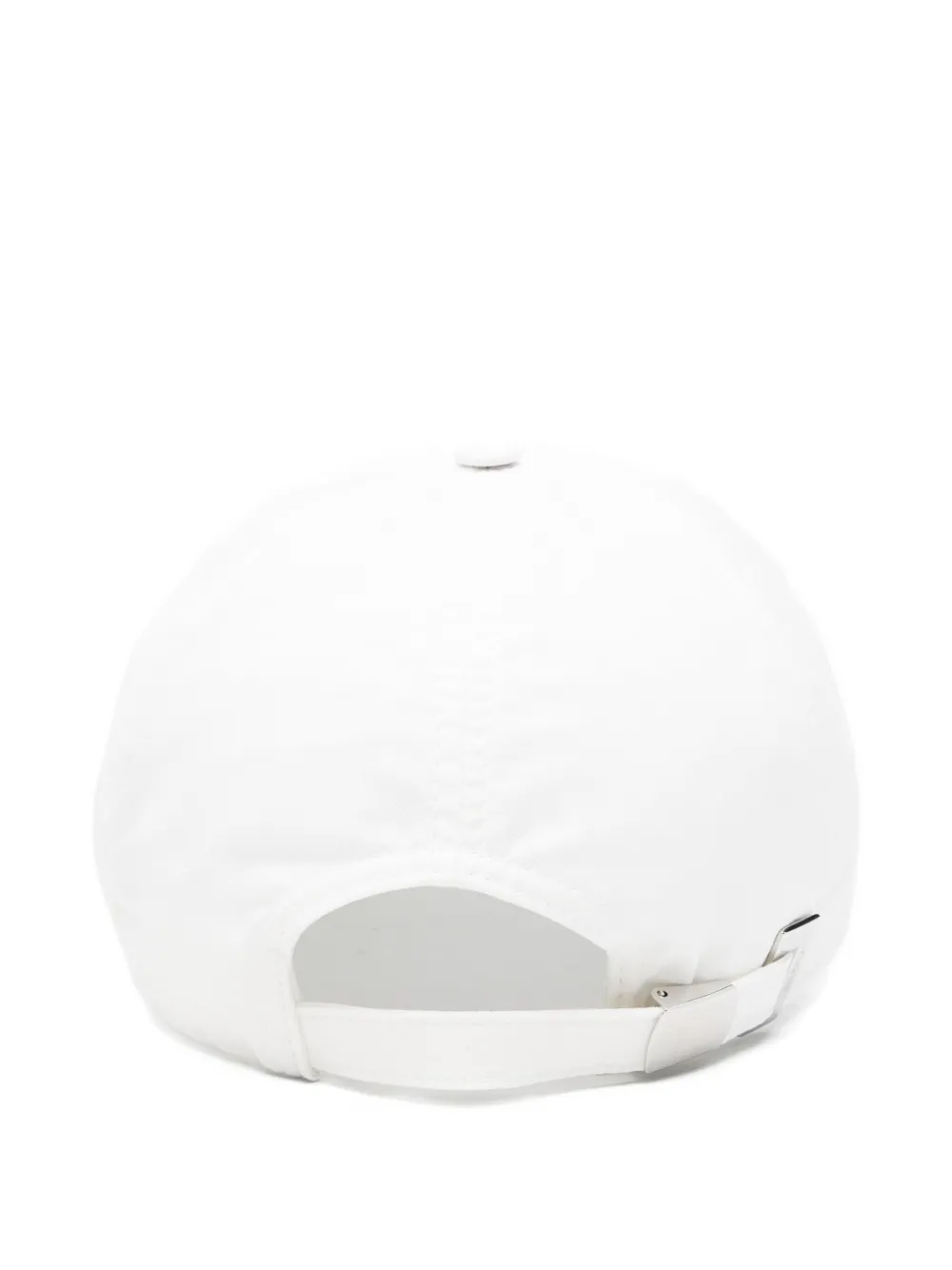белая хлопковая кепка с вышитыми логотипами, изогнутым козырьком и регулируемым ремешком