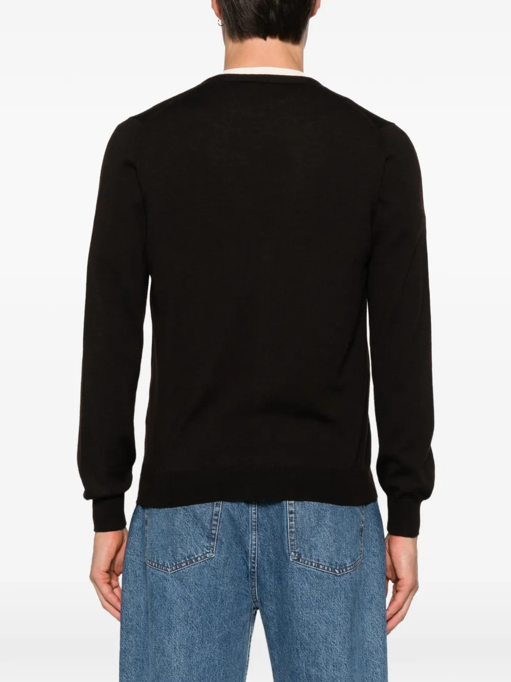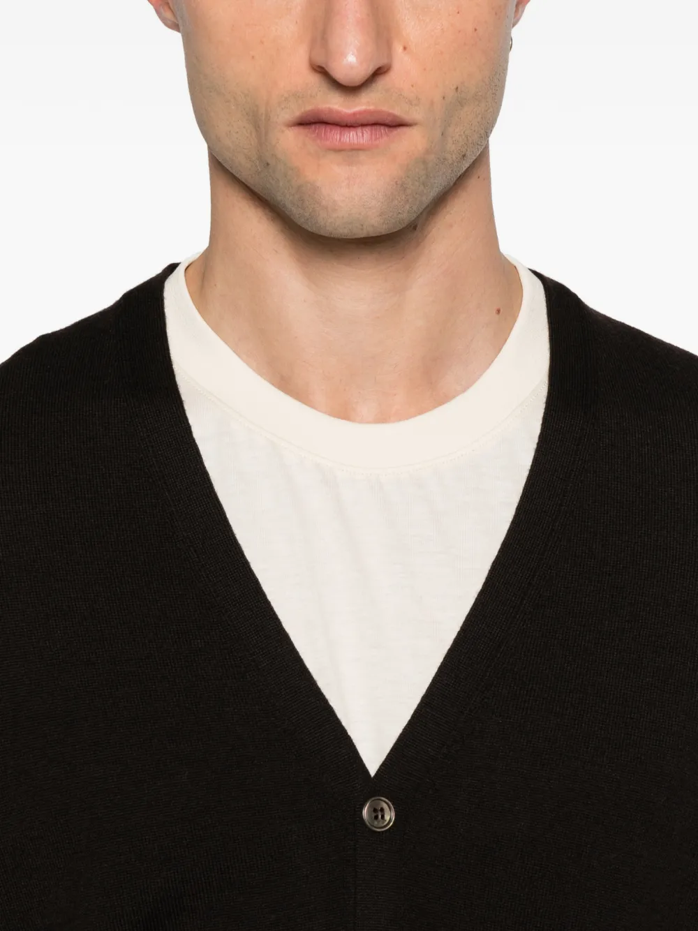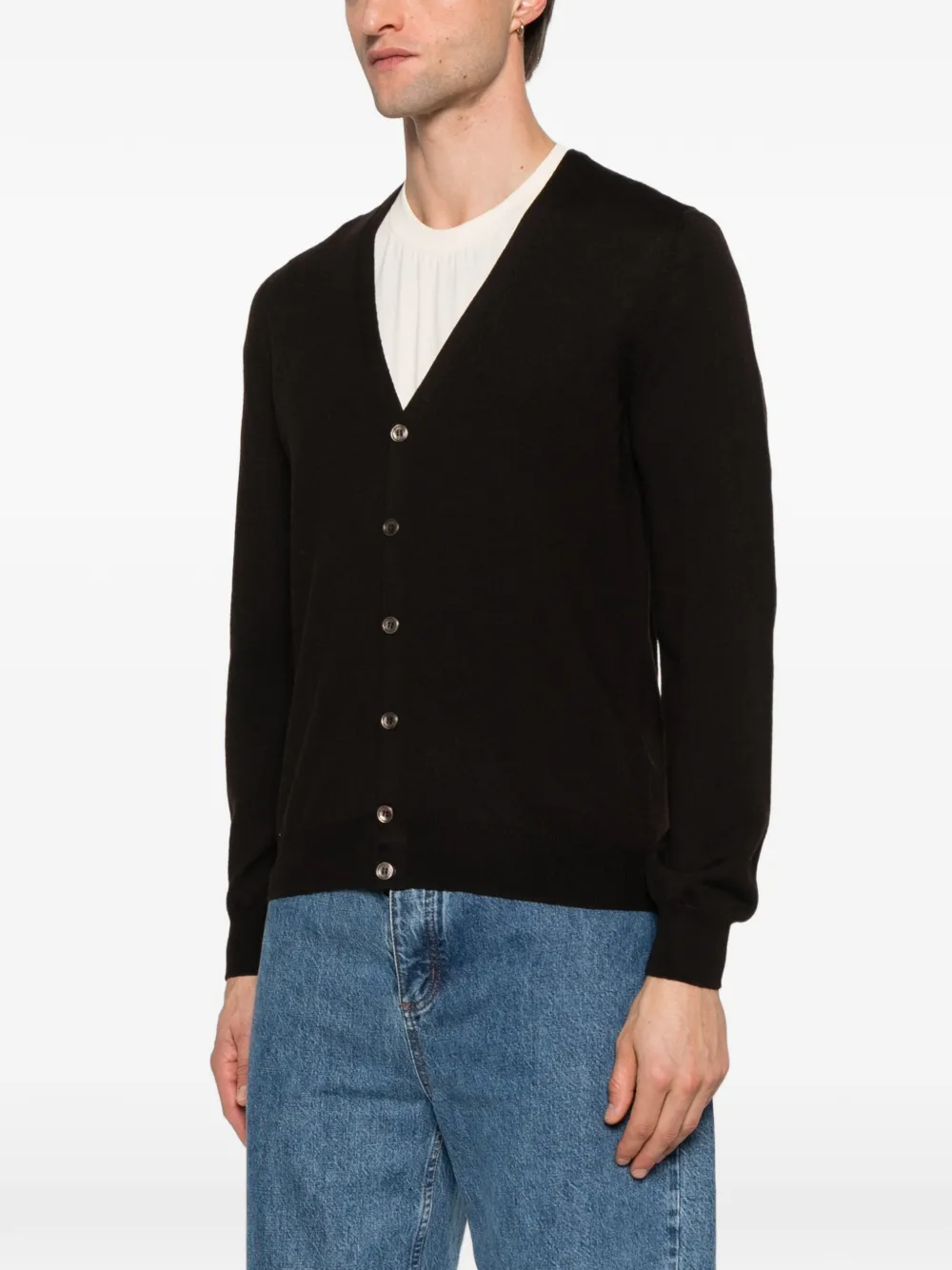 темно-коричневый V-образный вырез застежка на пуговицы длинные рукава ребристые манжеты ребристый край