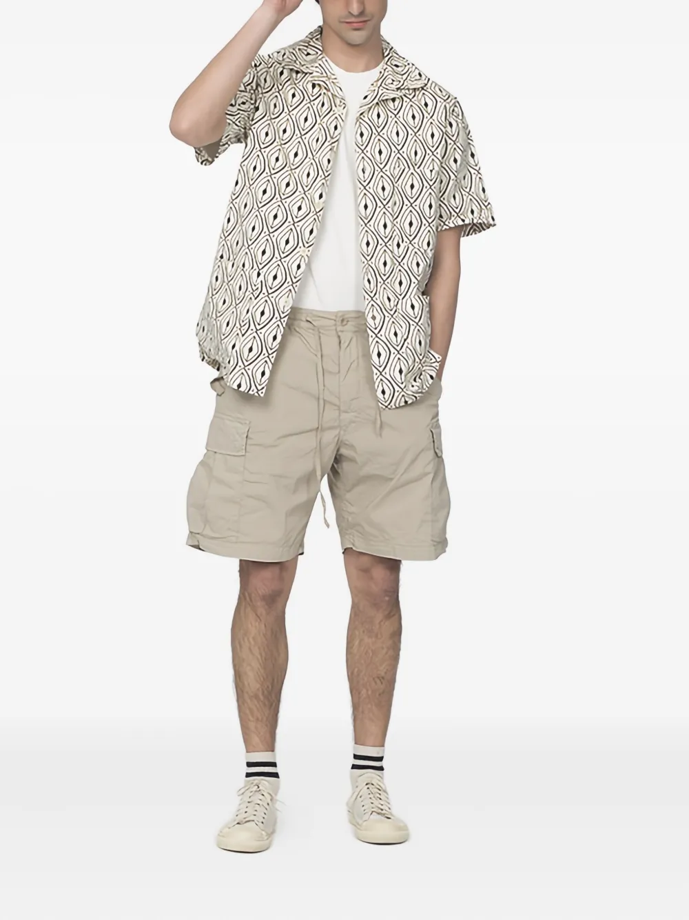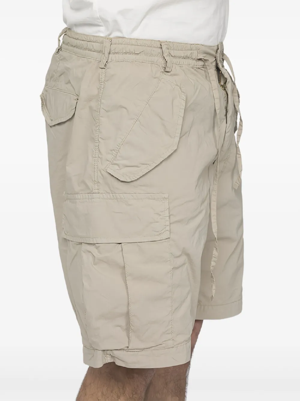 бежевые карманы-карго, застежка на шнурке, шлевки для ремня, боковые накладные карманы