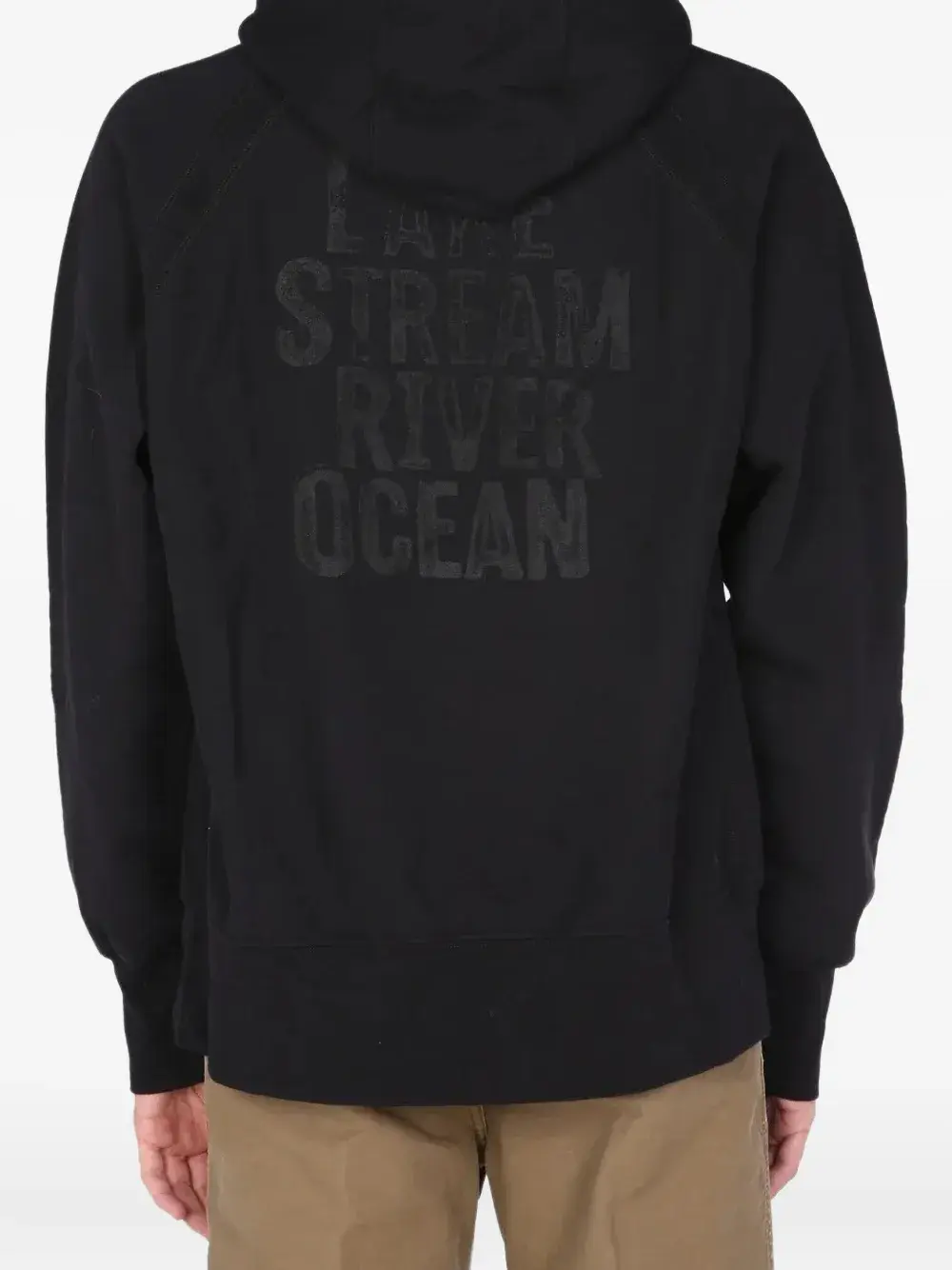чёрный, с передним карманом-кенгуру, с принтом, с застёжкой на кнопках