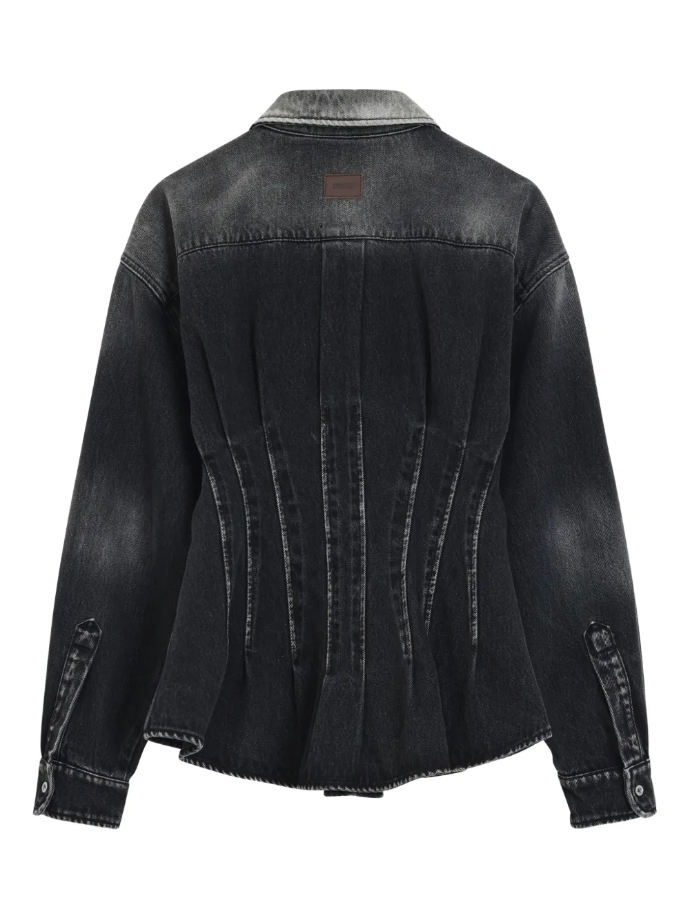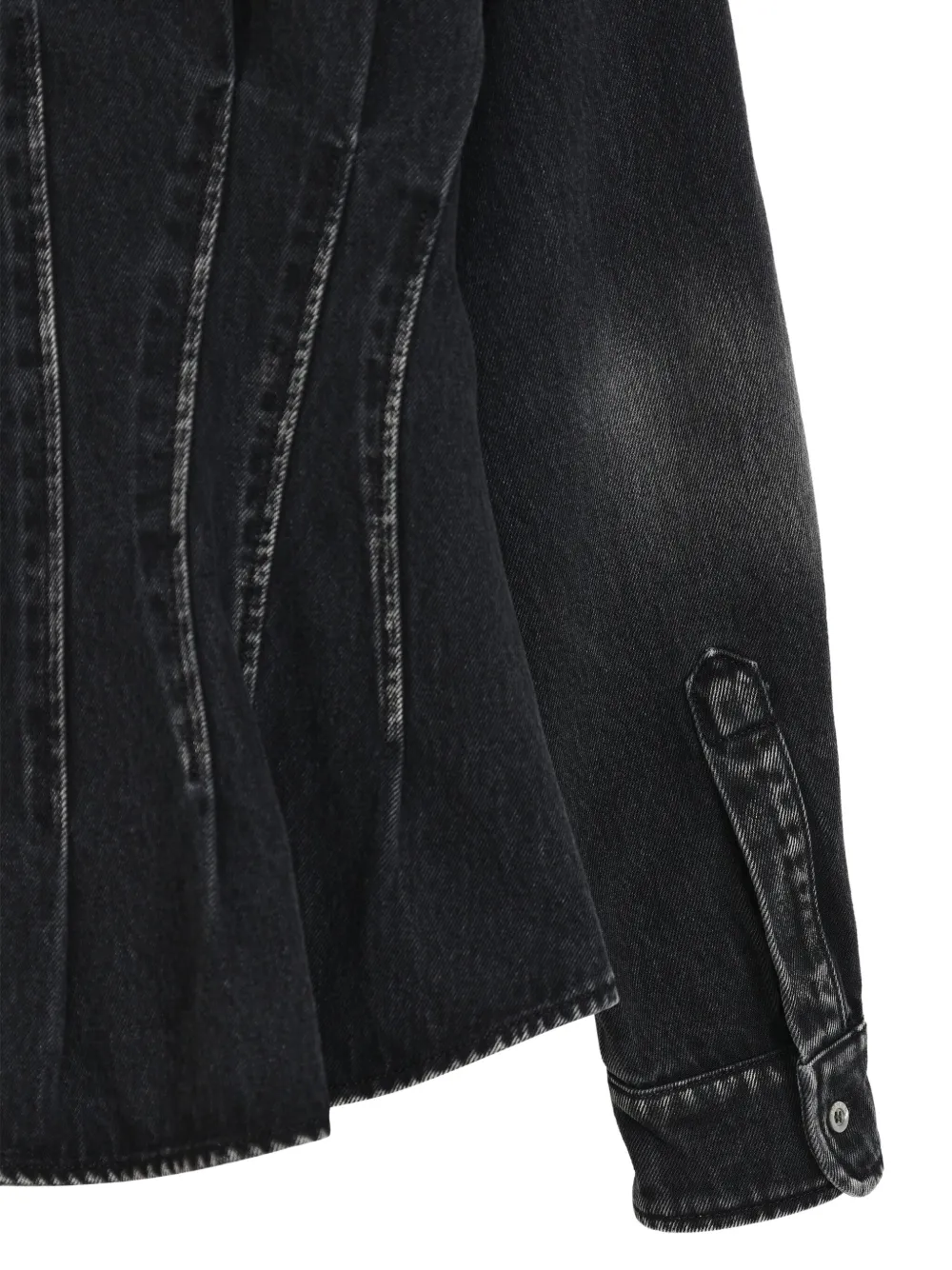 черная рубашка с потайной застежкой, длинными рукавами и манжетами на пуговицах