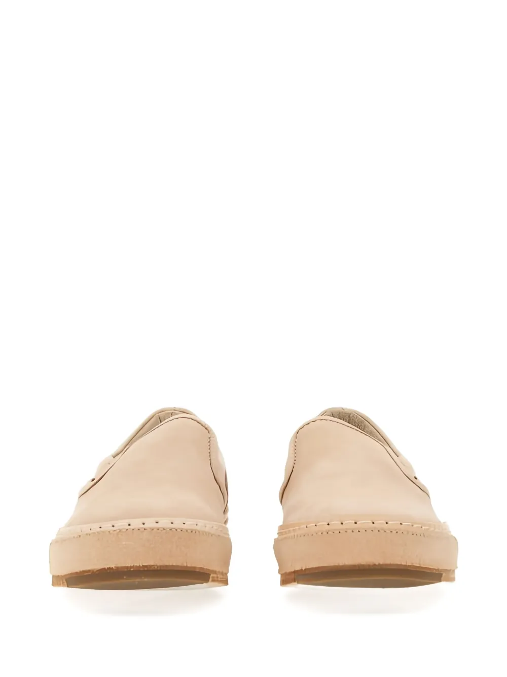 бежевые слипоны, декоративная строчка, плоская подошва, петля на пятке, круглый носок
