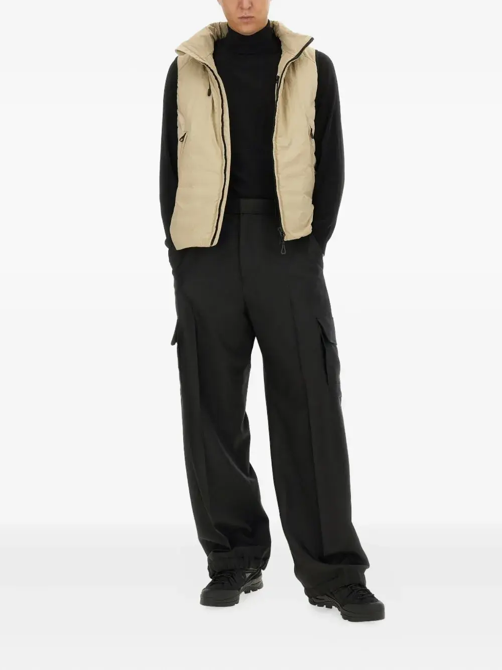 белый топ без рукавов с высоким воротником, молнией и шнурком
