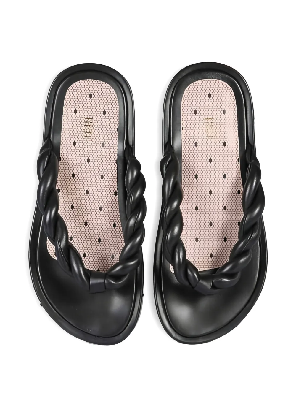 черные туфли без застежек с отделкой в виде скручивания, принтом в горошек, открытым носком и плоской подошвой