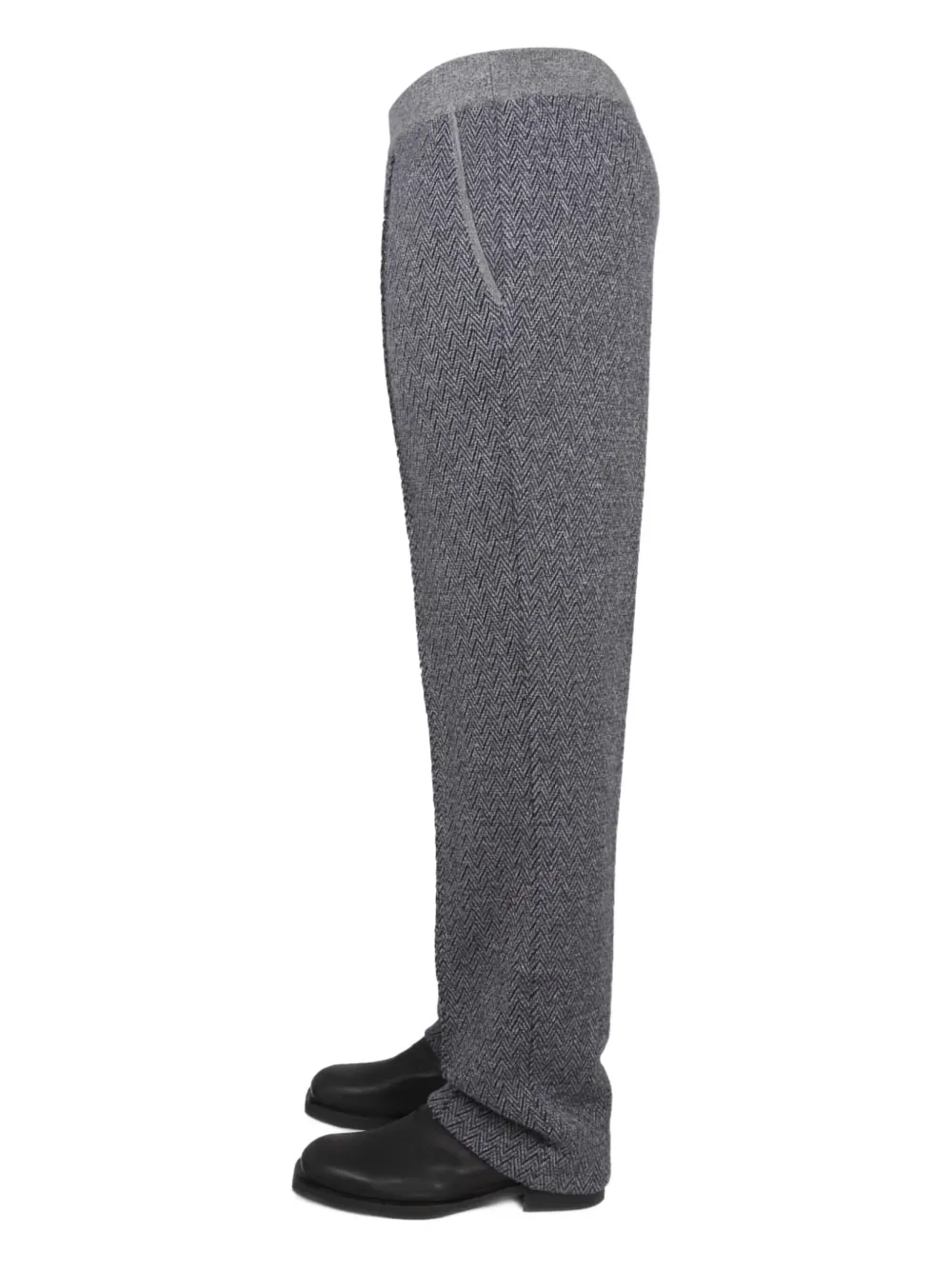 серый текстурированный материал, эластичный пояс, задний накладной карман, шерсть