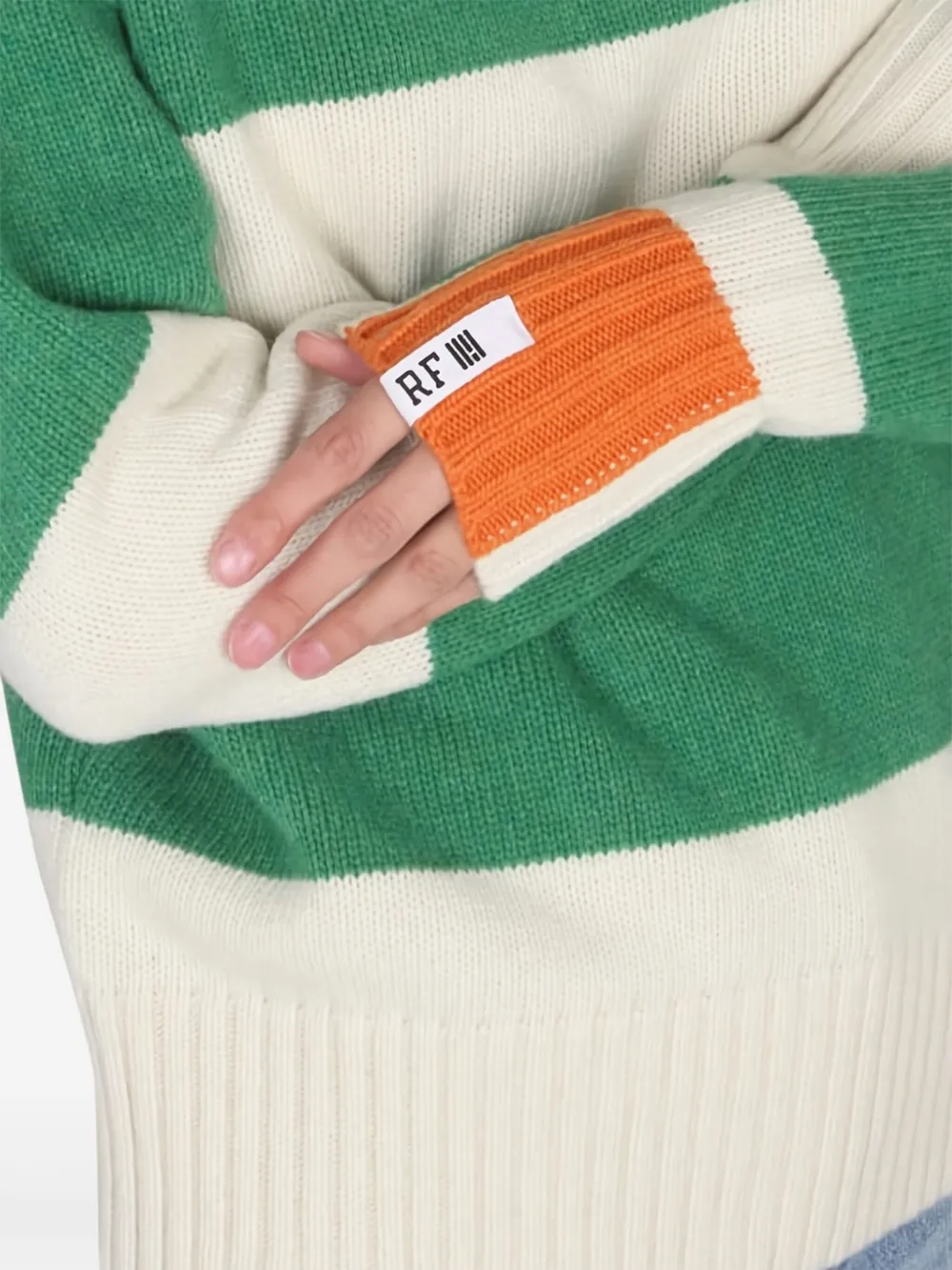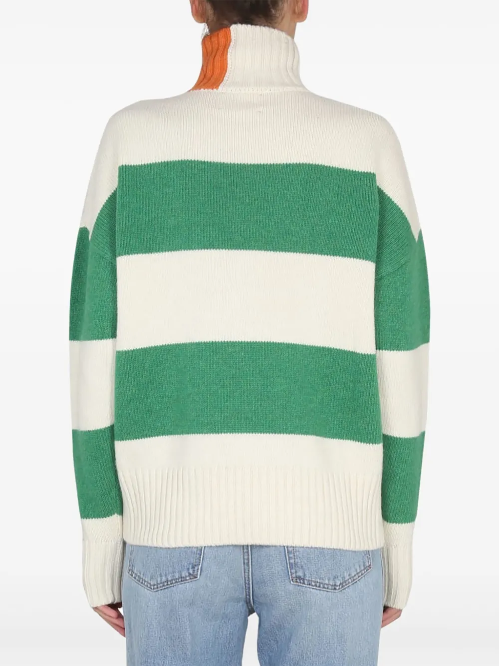 кремово-зеленый полосатый дизайн, водолазка, длинные рукава, деталь с логотипом на манжете
