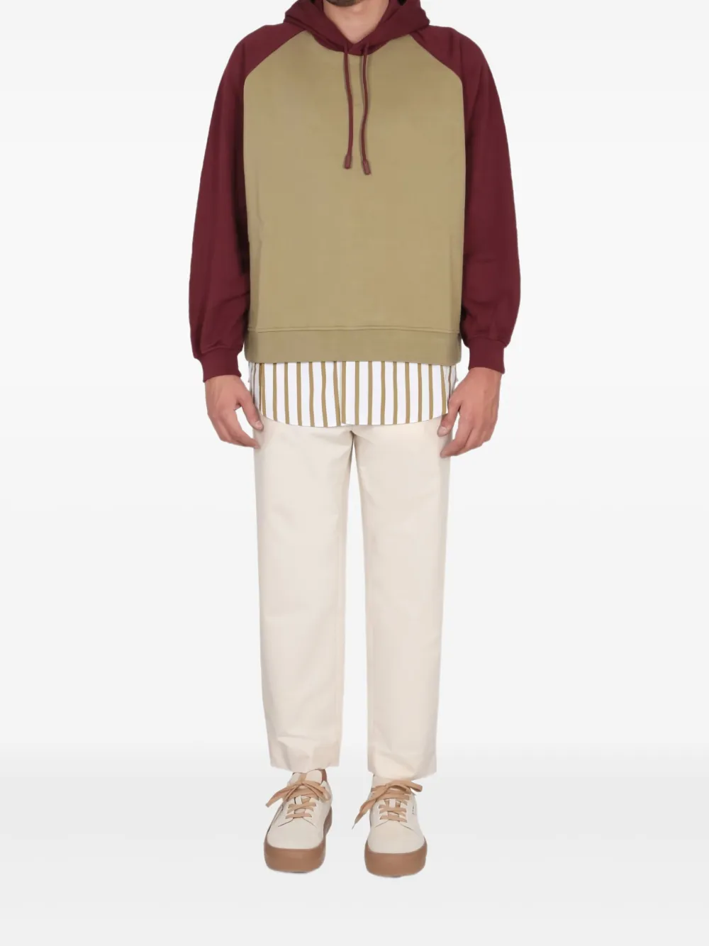 бежевый и бордовый, рукава реглан, капюшон на завязках, манжеты в рубчик, нижний край в рубчик, хлопок