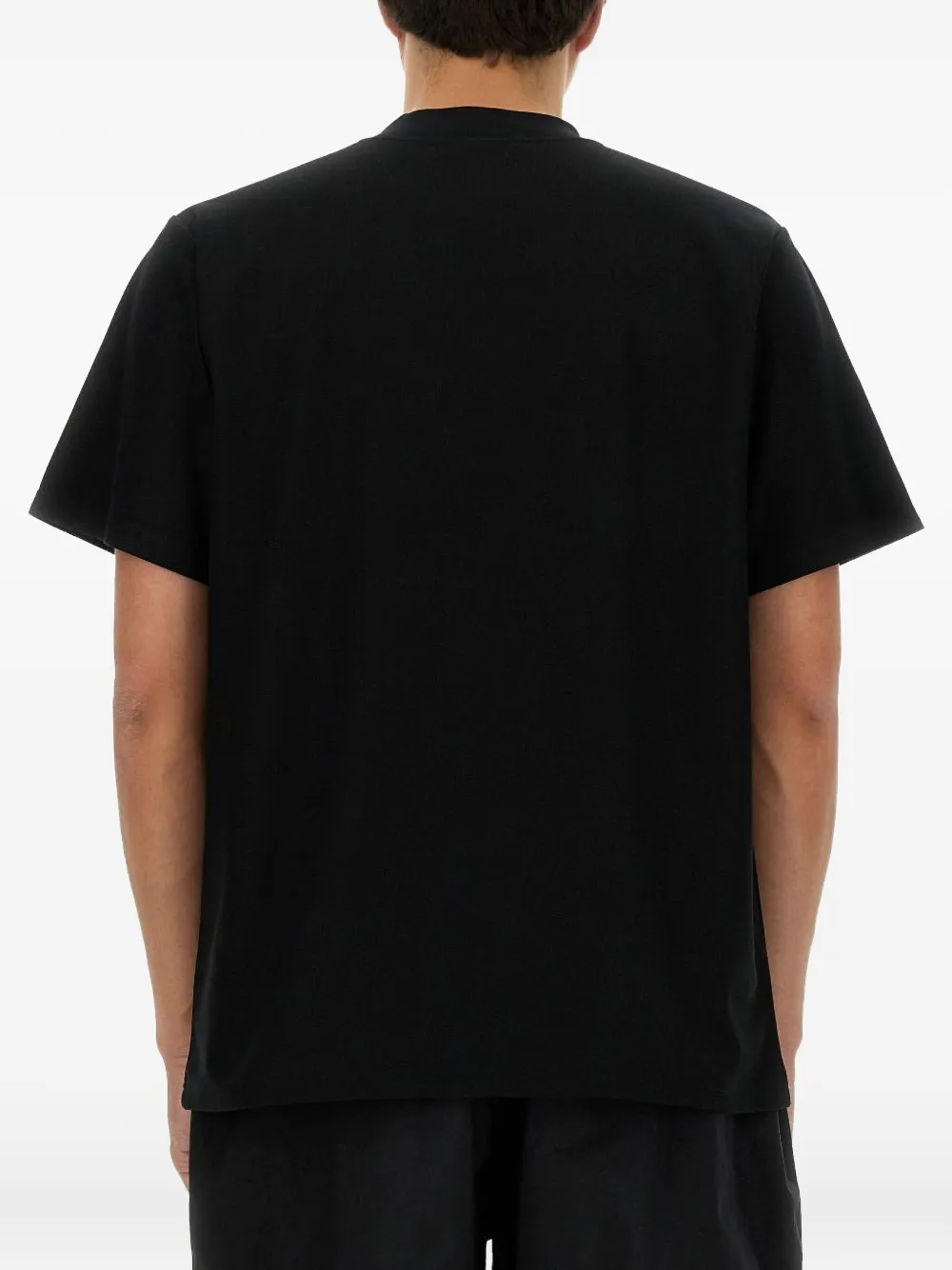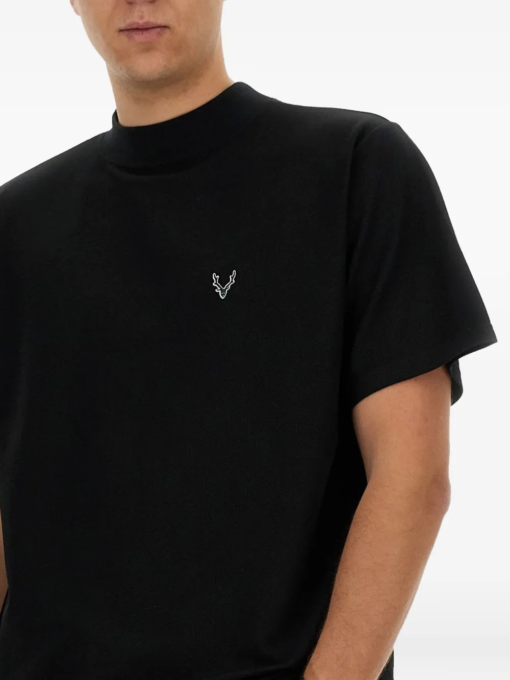 черная футболка с вышитым логотипом и короткими рукавами