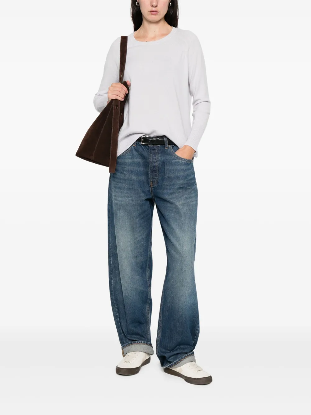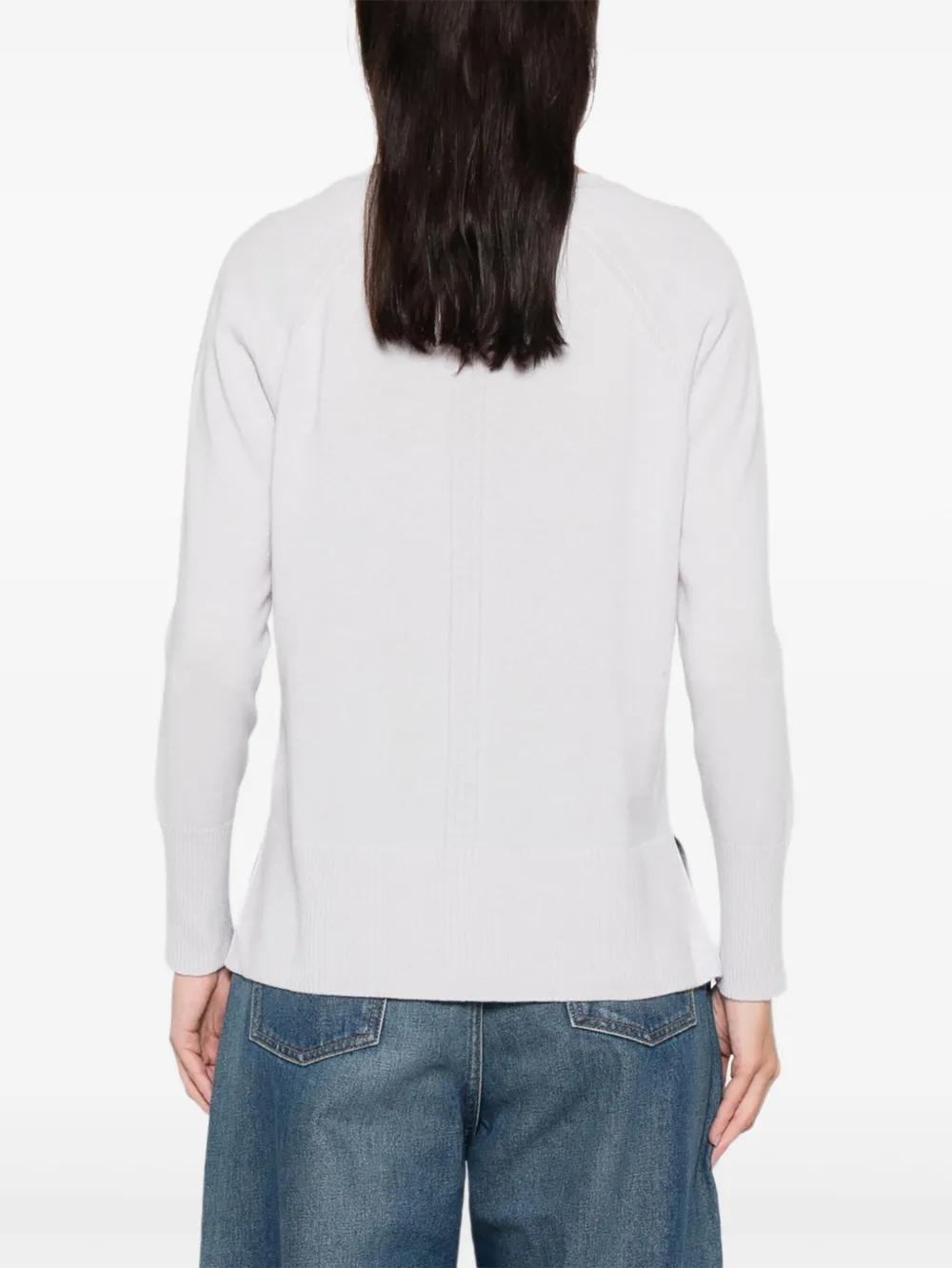 синие плечевые вставки, круглый вырез, длинные рукава, ребристые манжеты