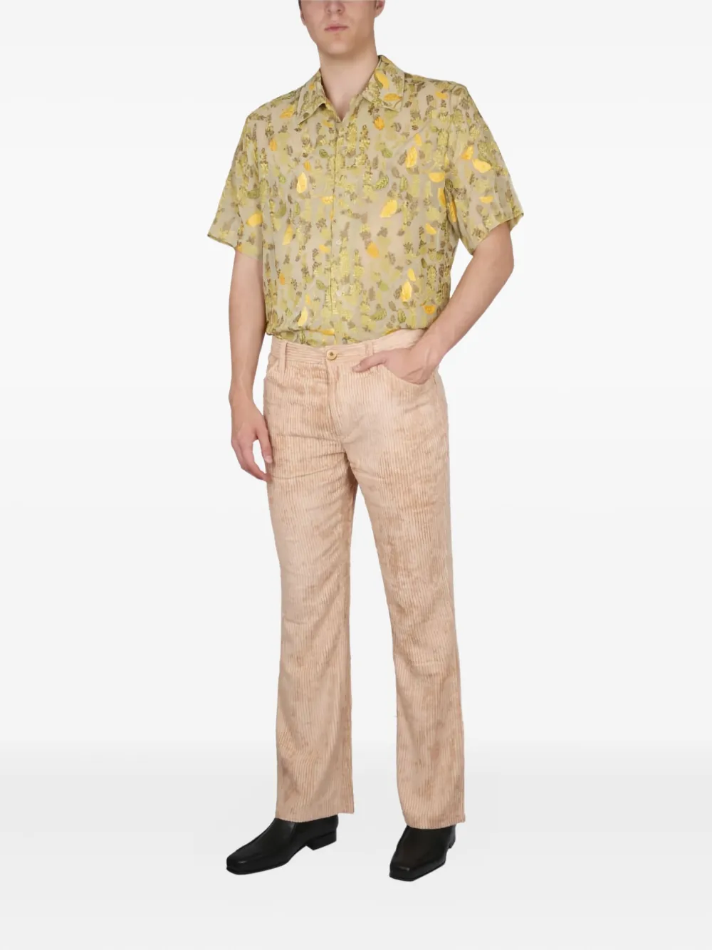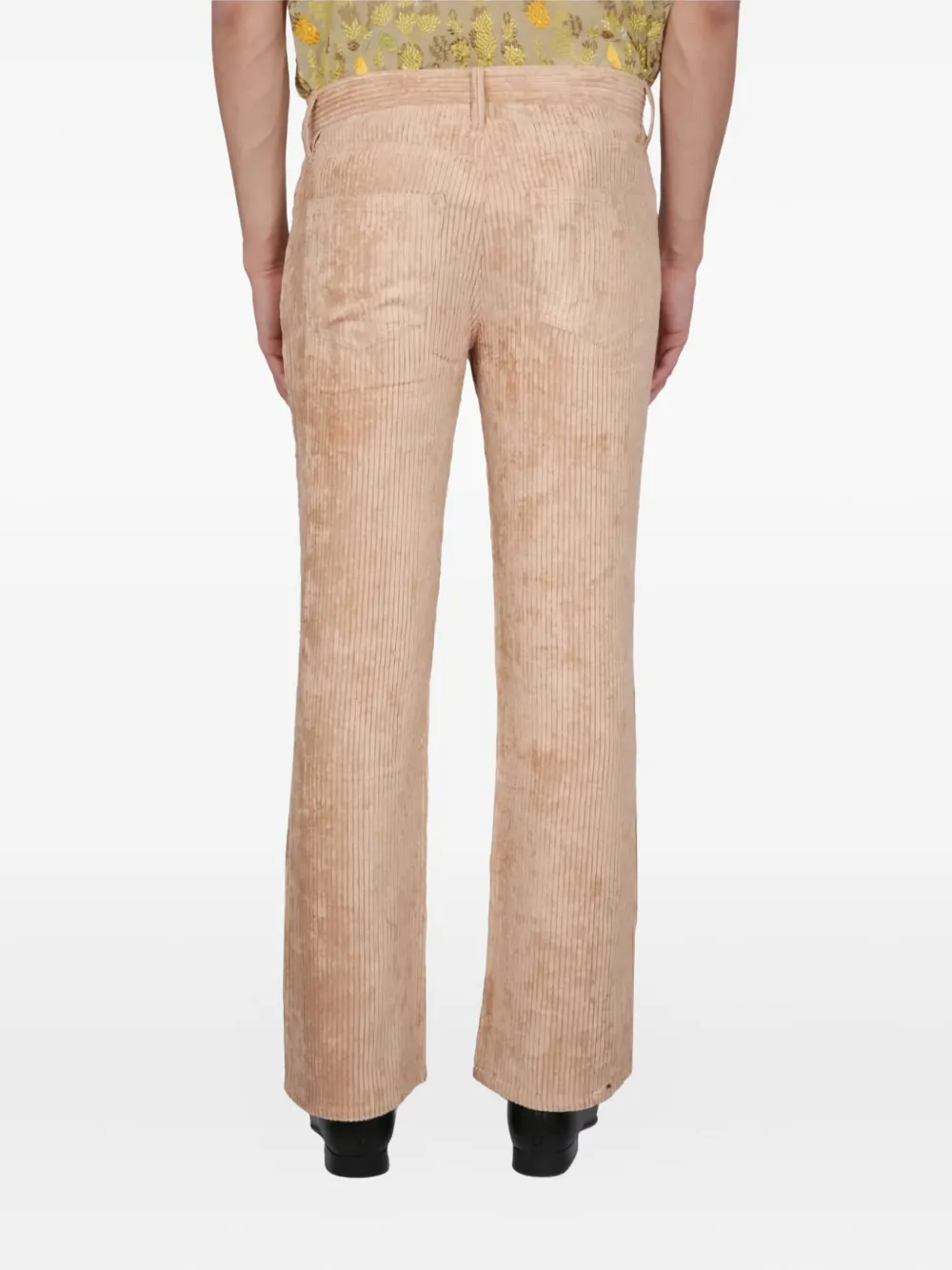 бежевый вельвет, фактурная поверхность, застежка на пуговицы спереди, шлевки для ремня, накладные карманы сзади