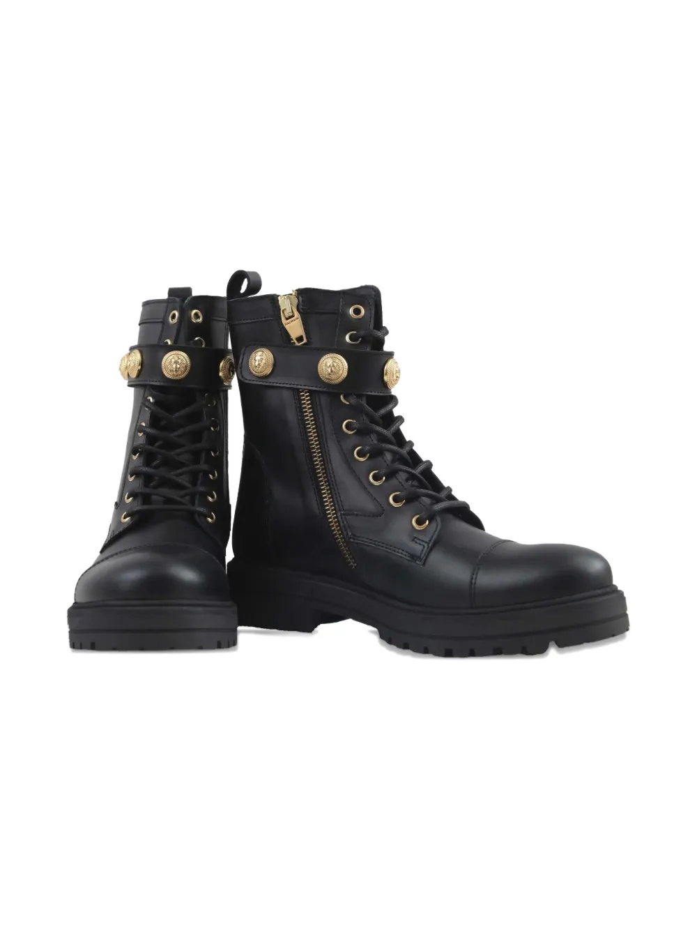 Сапоги с ремешком и медальоном Balmain Kids, черный