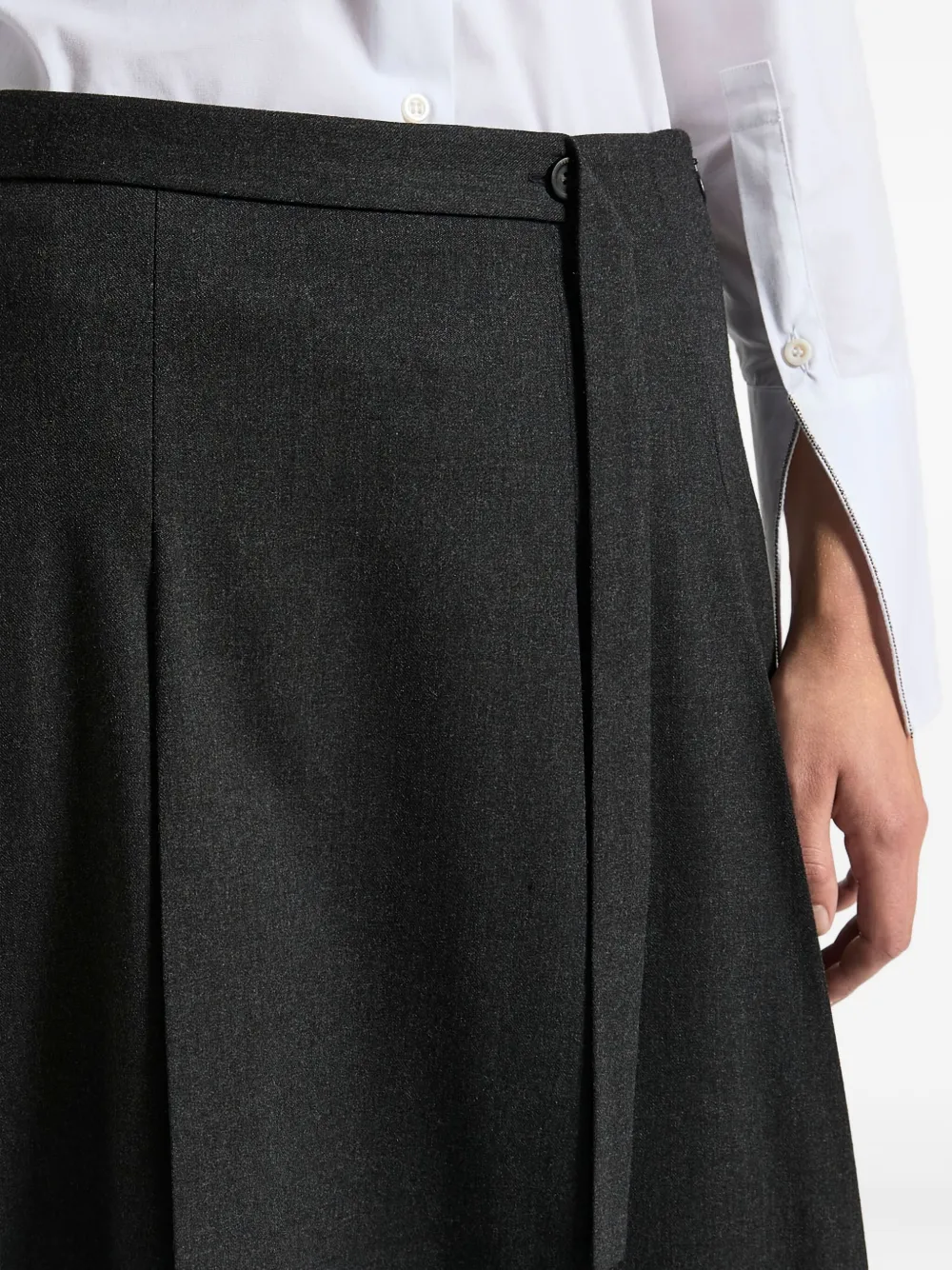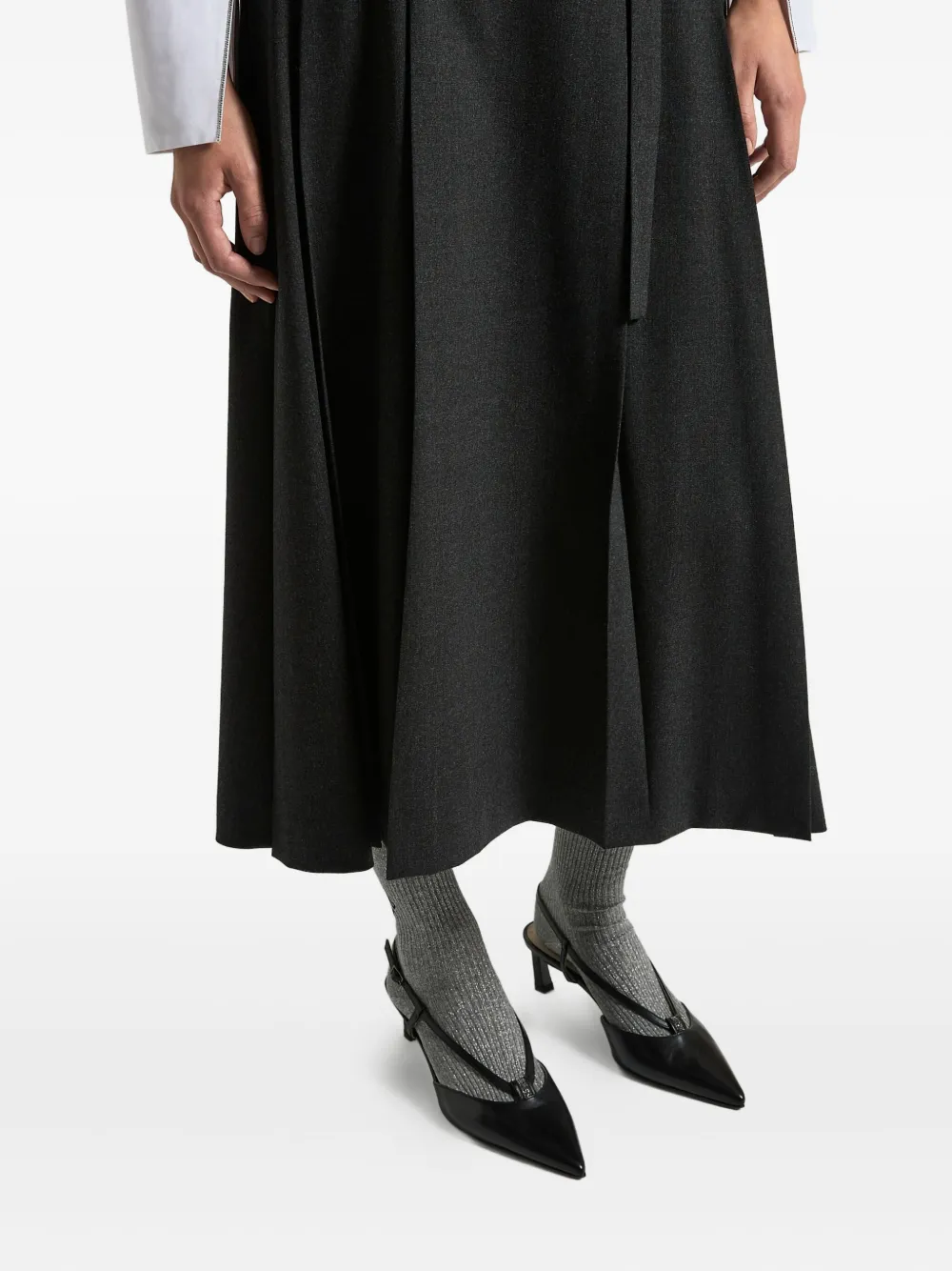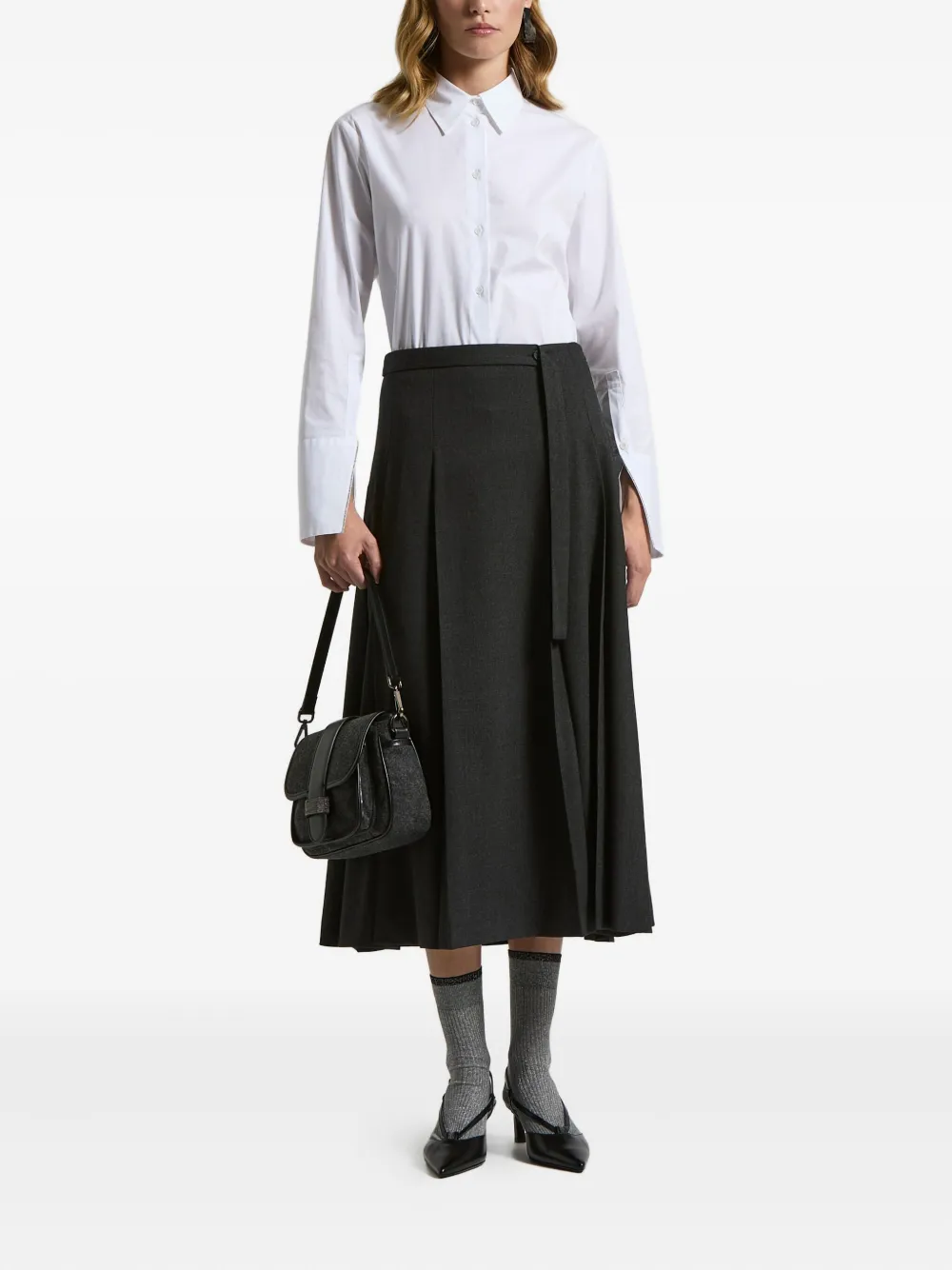 серый ремень, плиссировка, застежка на пуговицы, силуэт "А-силуэт", длина миди
