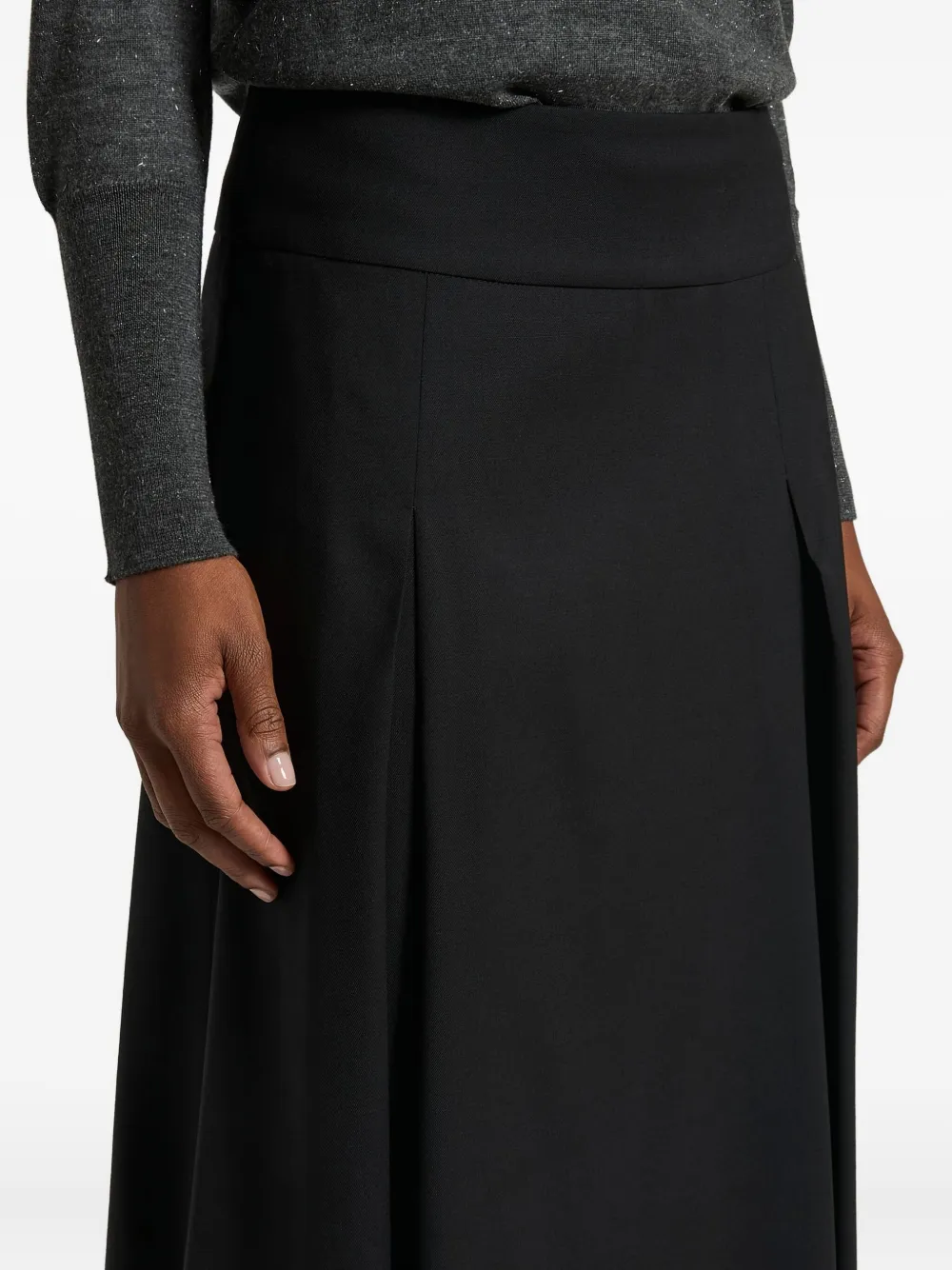чёрная миди-юбка с плиссировкой, застёжкой-молнией сбоку