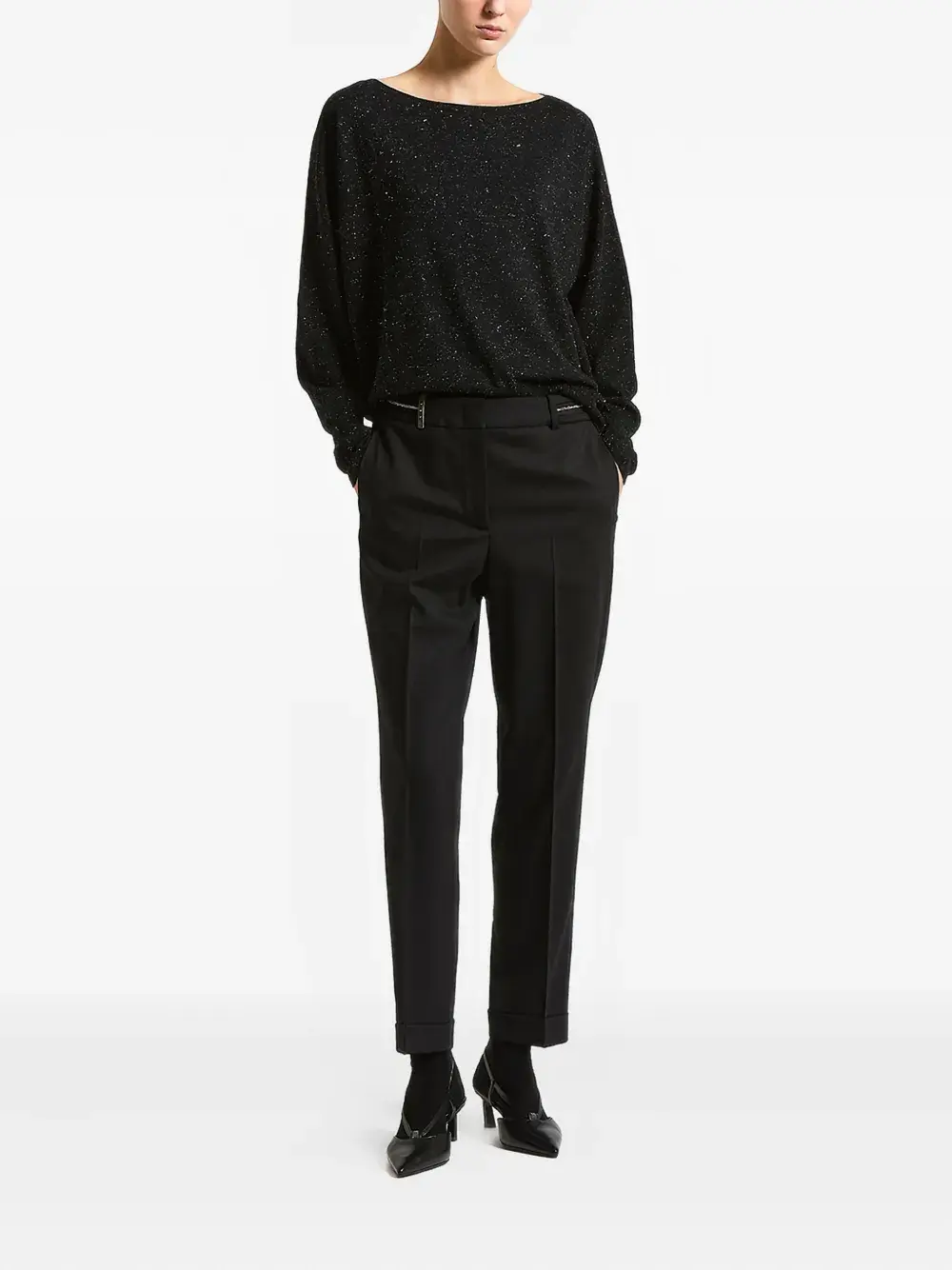 чёрный, шлевки для ремня, отвороты на манжетах, скрытая застёжка, боковые карманы