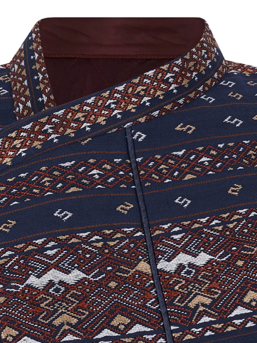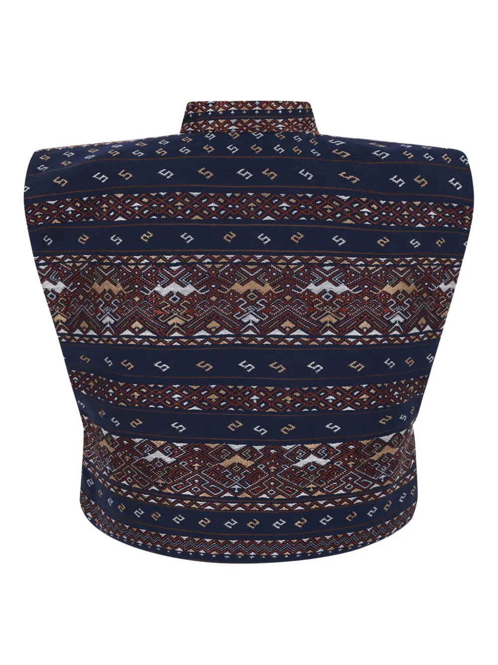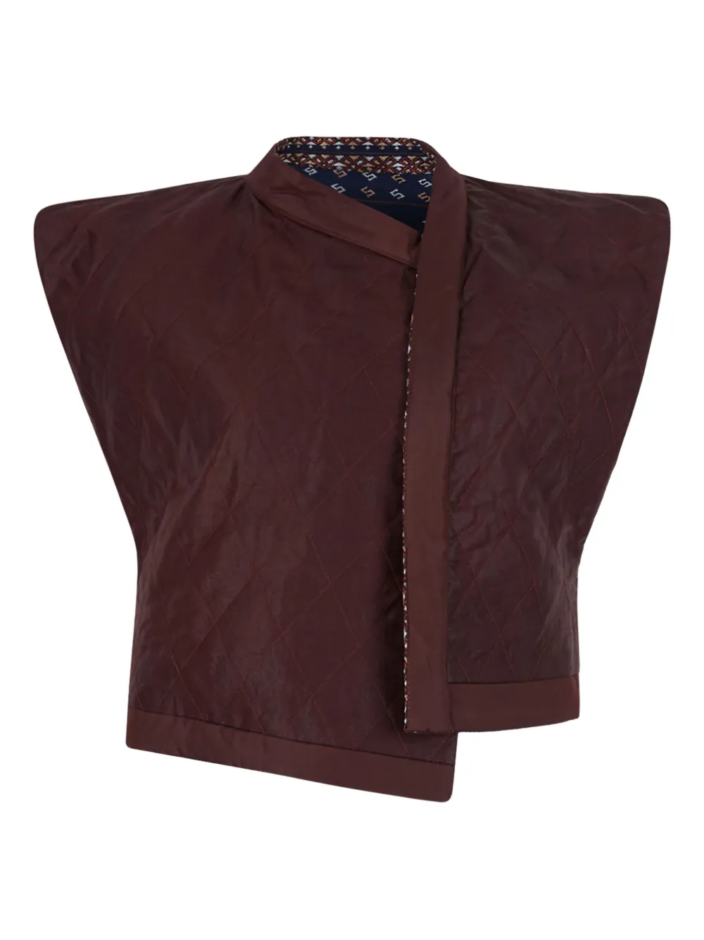 коричневый жилет с полосатым узором, стеганой подкладкой, высоким воротом, без рукавов и скрытой застёжкой