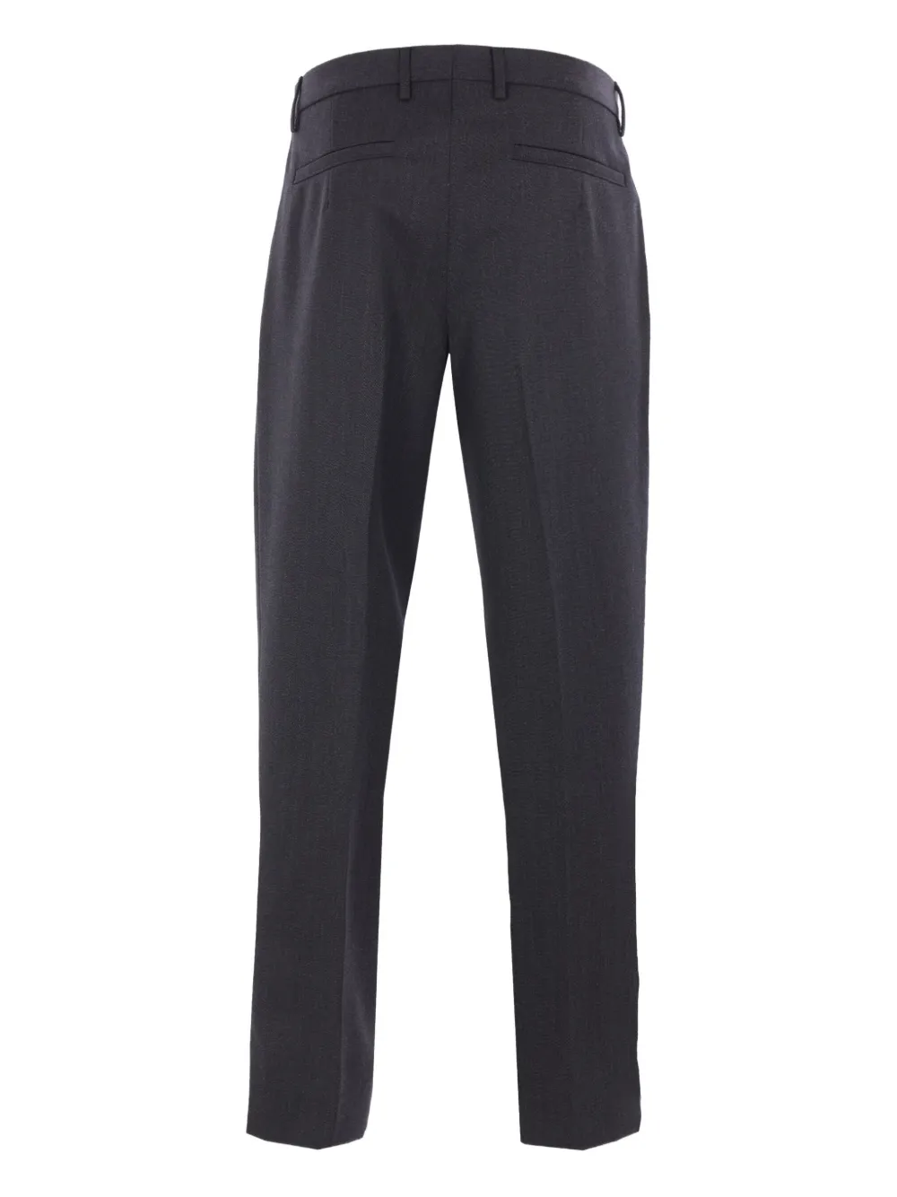 серые шлевки для ремня, задние прорезные карманы, скрытая застёжка, складки спереди