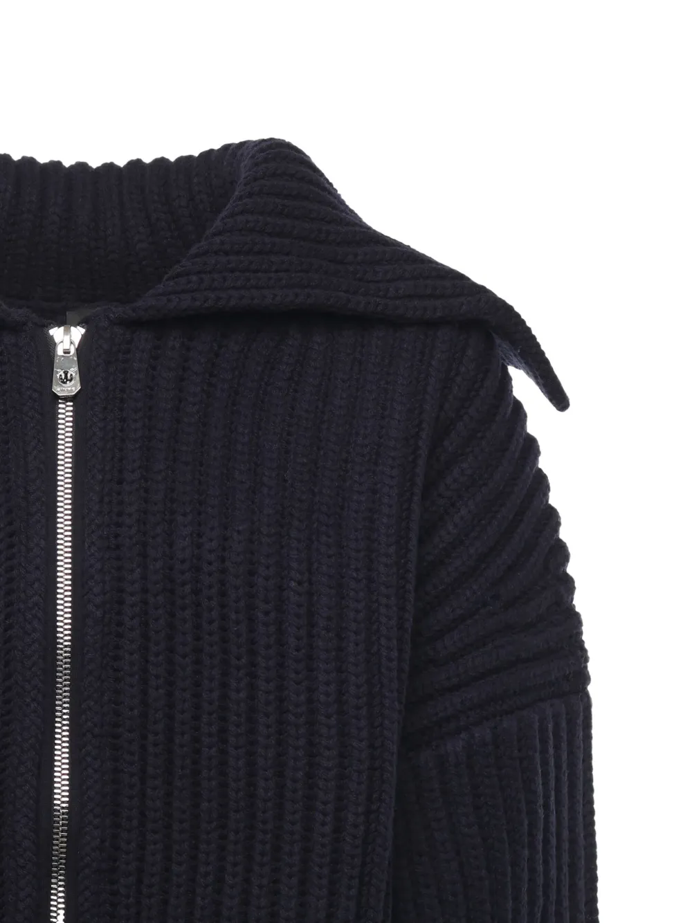 синий в рубчик, застёжка на молнии, широкий воротник, длинные рукава, прямой край