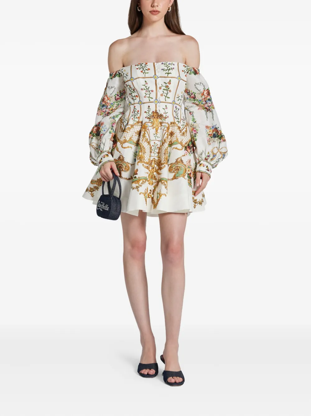 Платье с цветочным принтом с открытыми плечами Camilla, белый