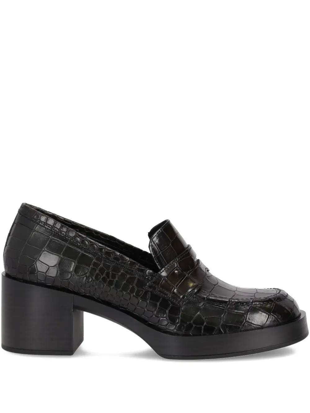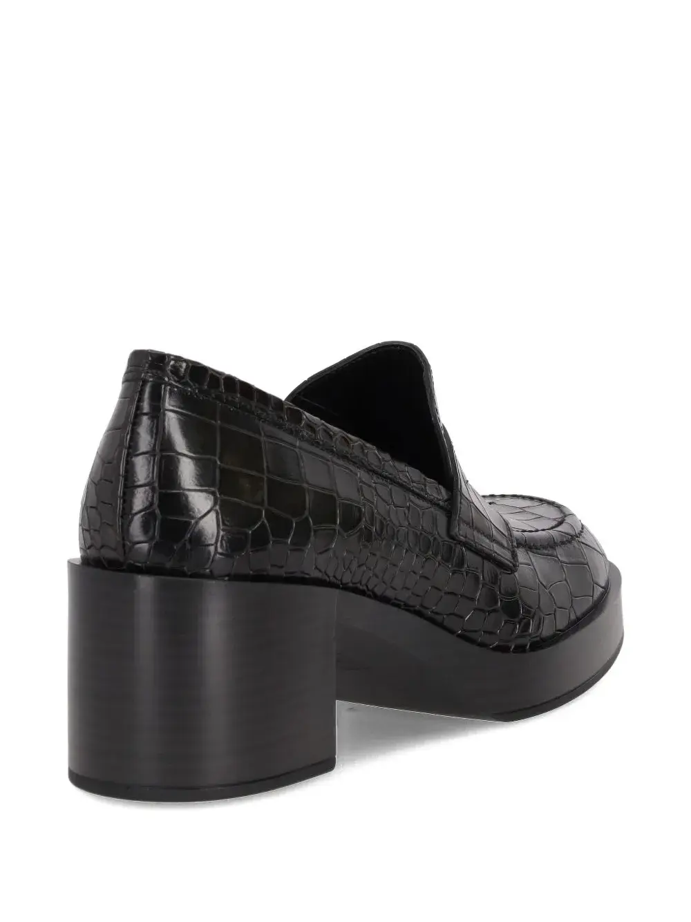 мшистого цвета лоферы с эффектом кожи крокодила, на платформе и широком каблуке, с круглым носком