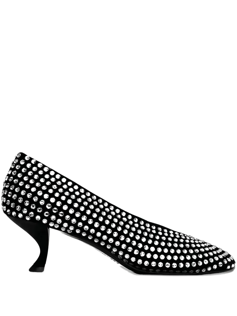 черные туфли с декором из кристаллов, изогнутым каблуком, округлым носком и дизайном без застежки