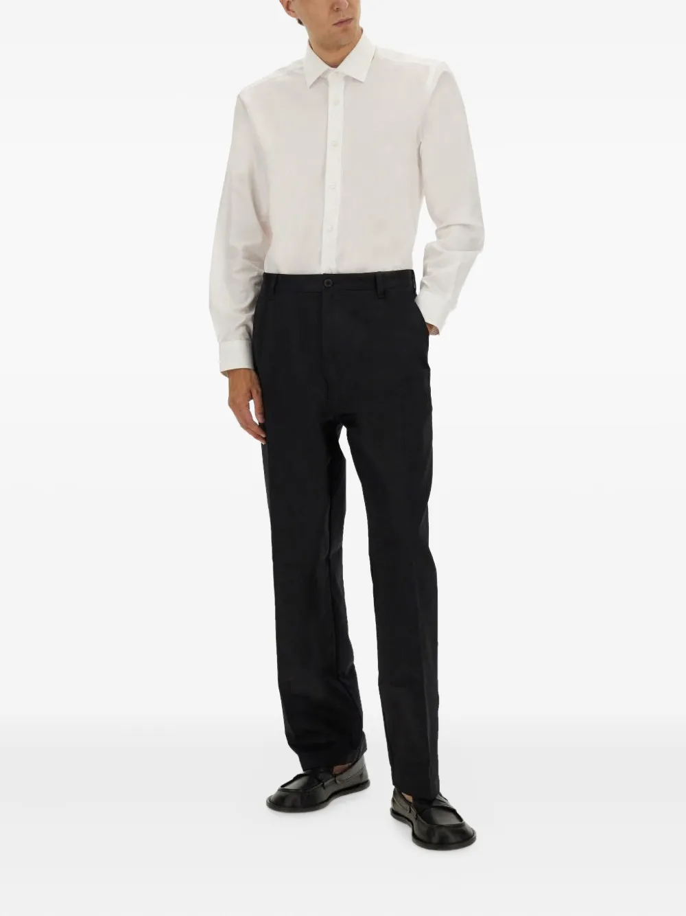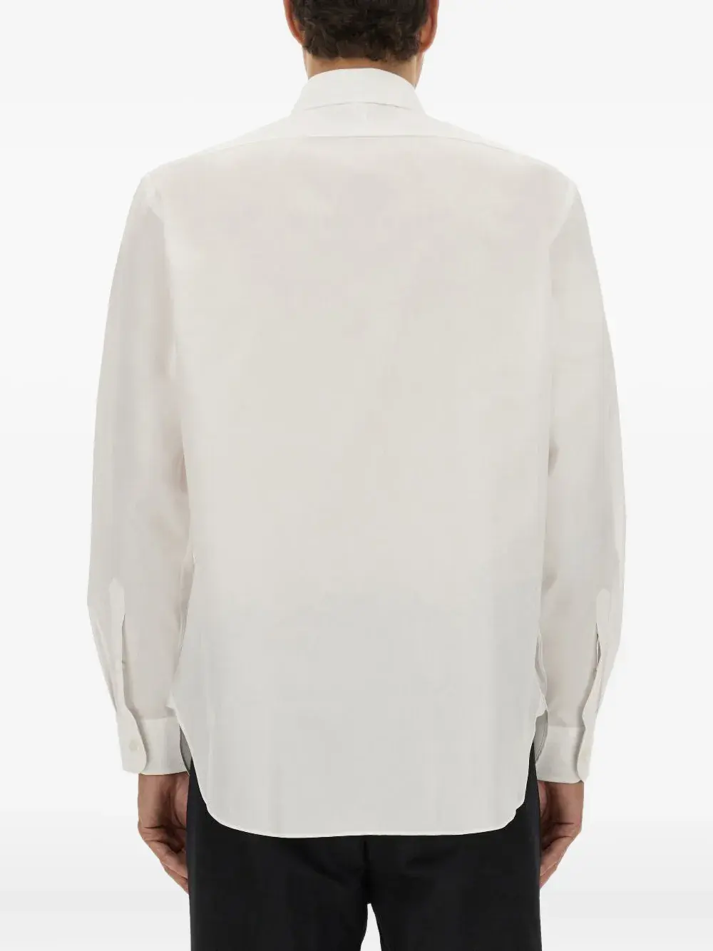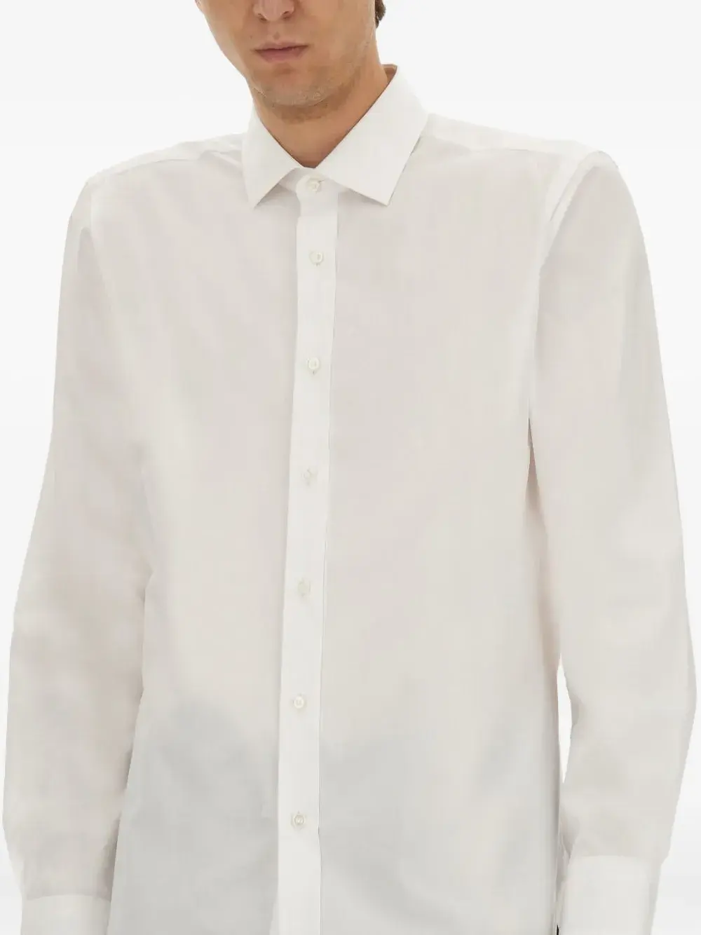 белая рубашка на пуговицах с длинными рукавами, манжетами на пуговицах и воротником
