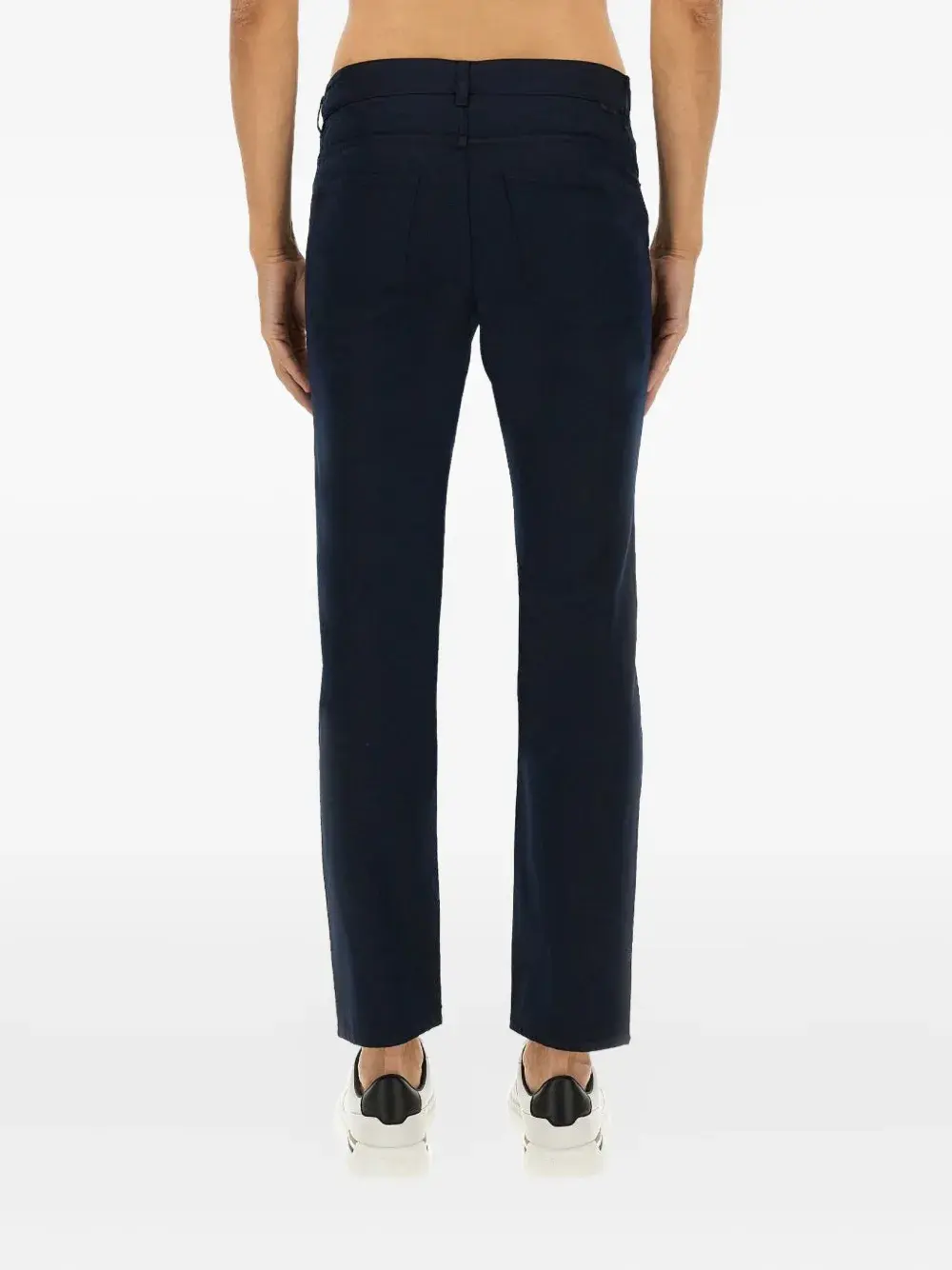 синие джинсы с пятью карманами, шлевками для пояса и декоративной отстрочкой