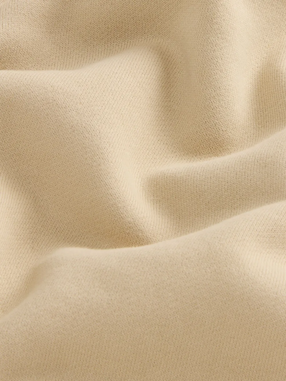 бежевый логотип на рукаве, круглый вырез, длинные рукава, ребристый край, ребристые манжеты