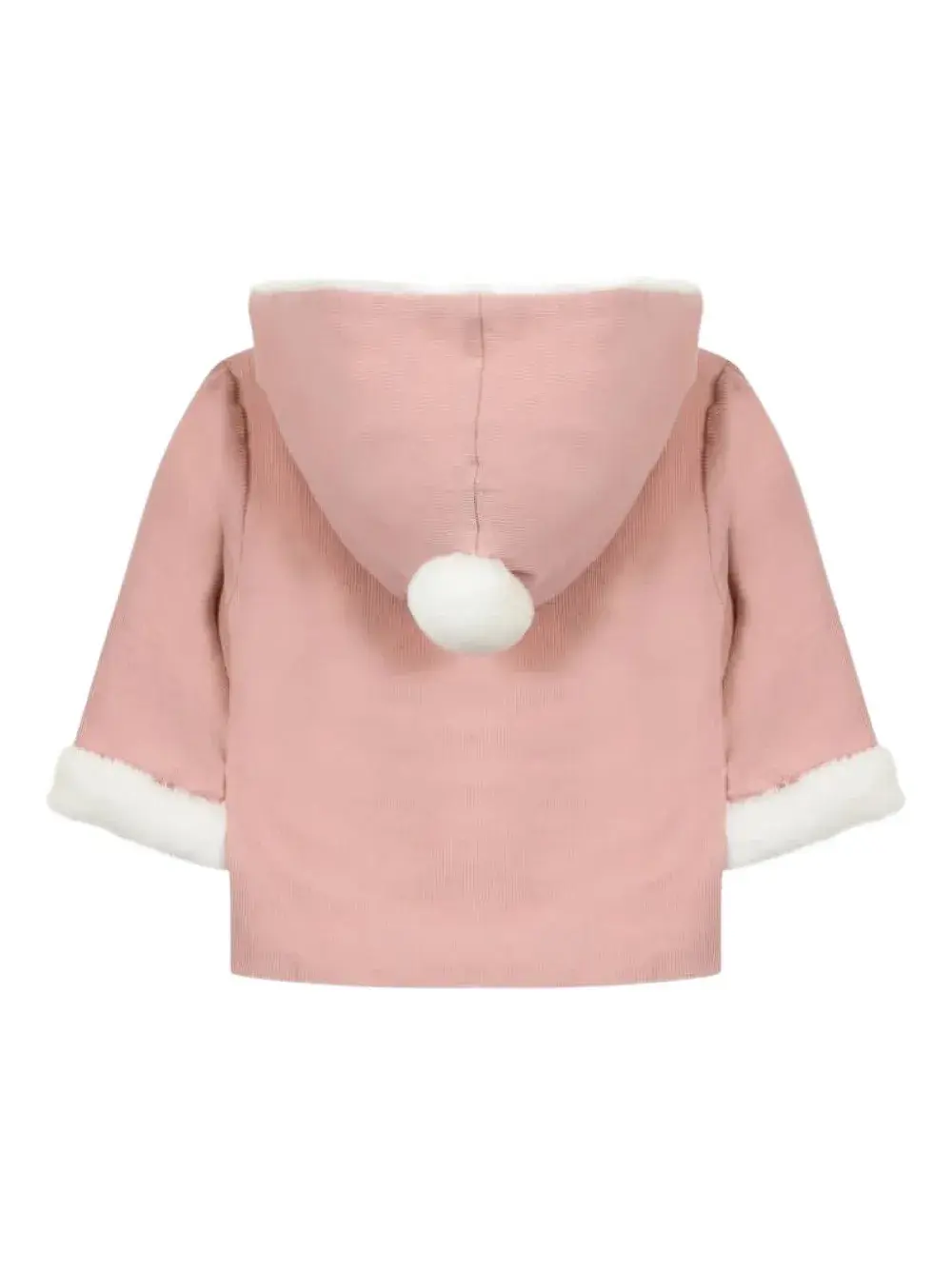 розово-розовый вельветовый худи с текстурой, застежкой на пуговицы, двумя передними карманами и отделкой помпонами