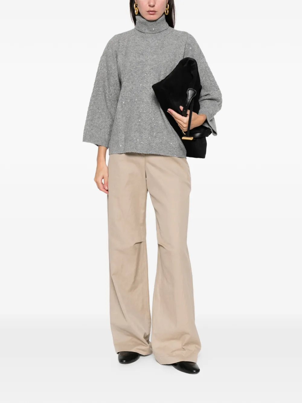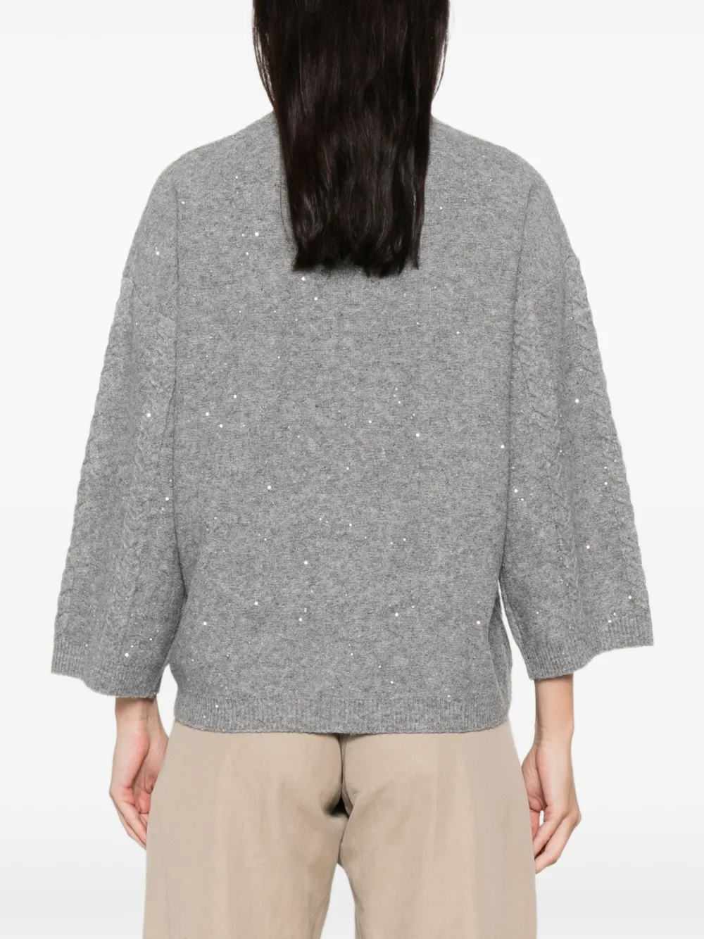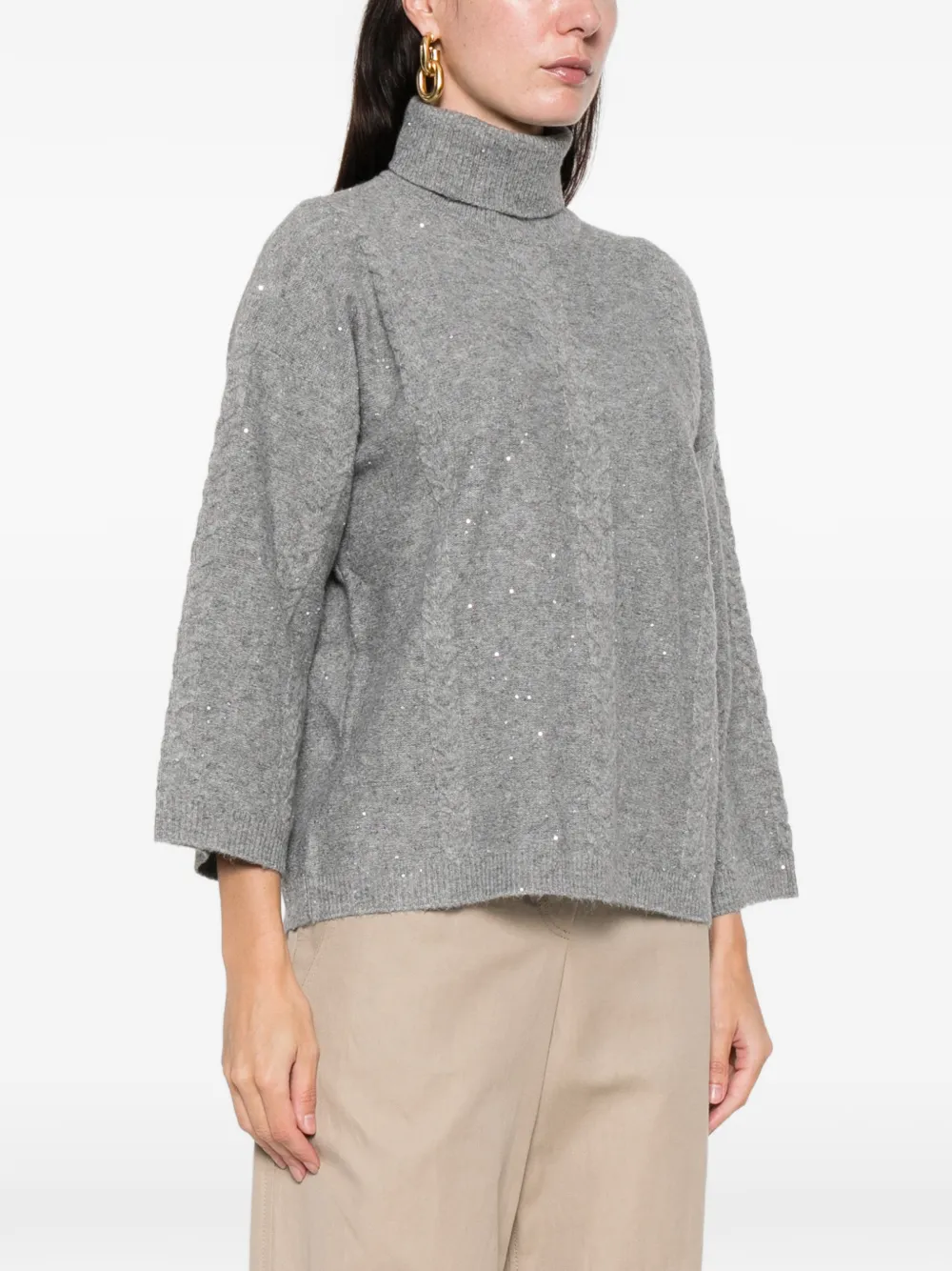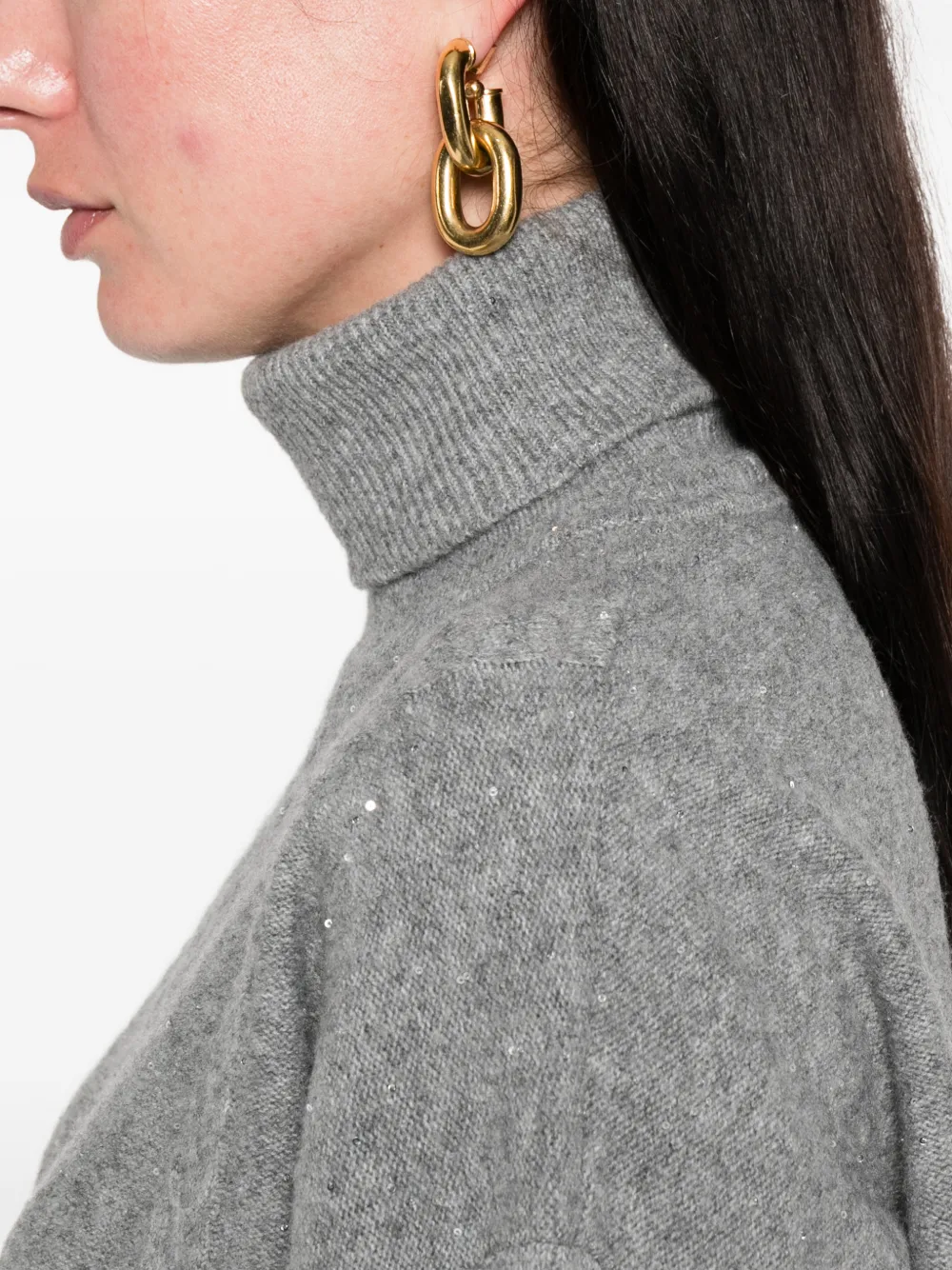 светло-серый гольф с пайетками, длинные рукава, ребристые манжеты и подол