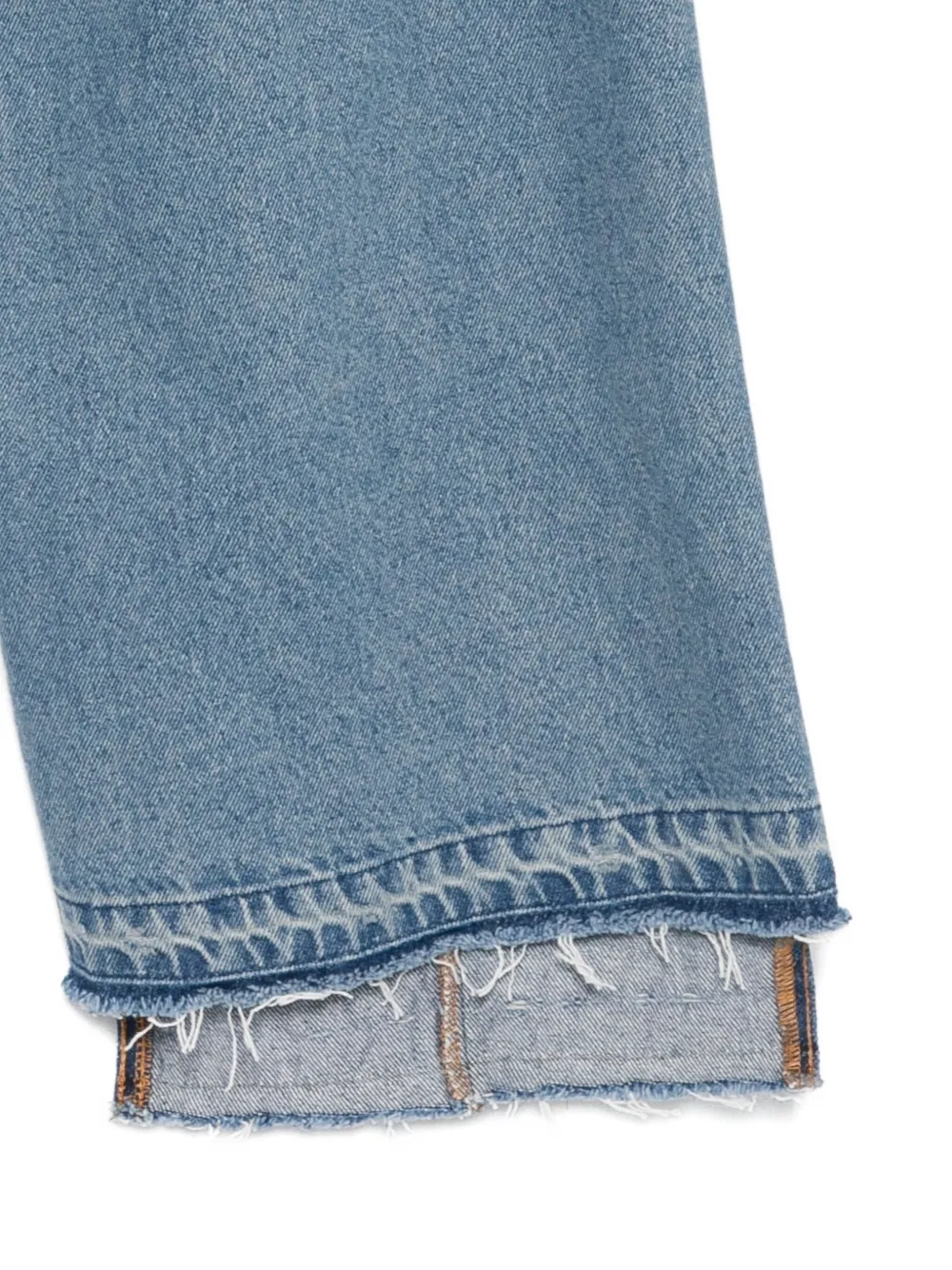 светло-голубые, необработанный край, передний шов, застежка на пуговицах, пять карманов