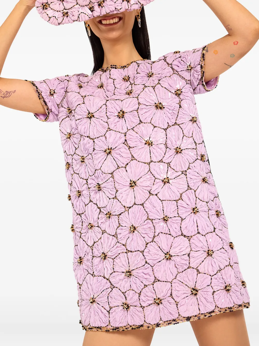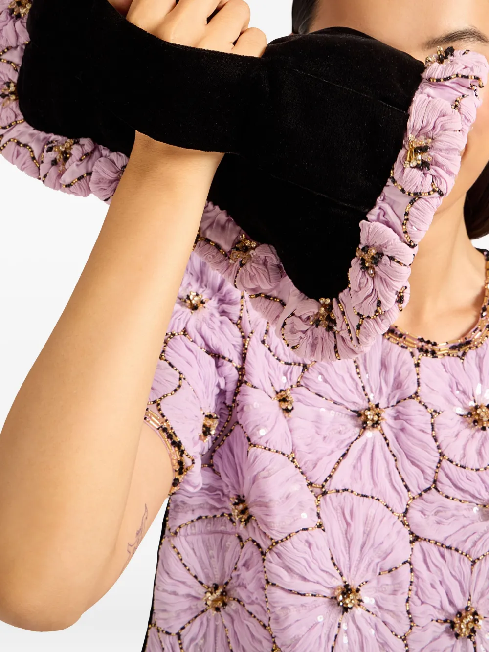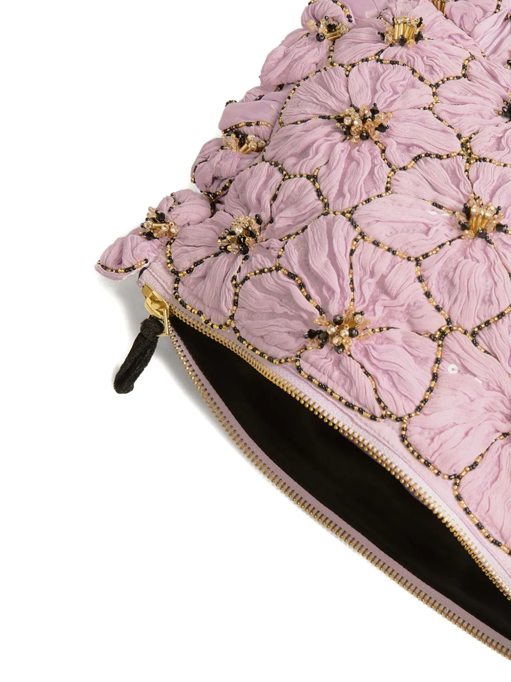 сиреневый цветочный дизайн, бисерная отделка, застежка-молния, сборки, прямоугольная форма