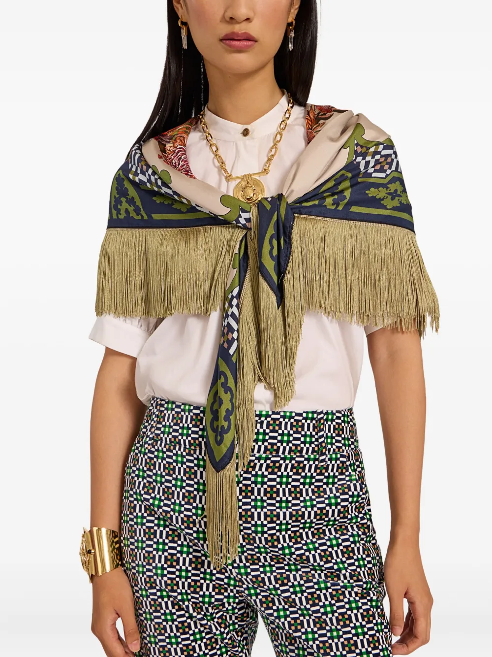Шарф с бахромой и принтом La Doublej, бежевый 49 089₽