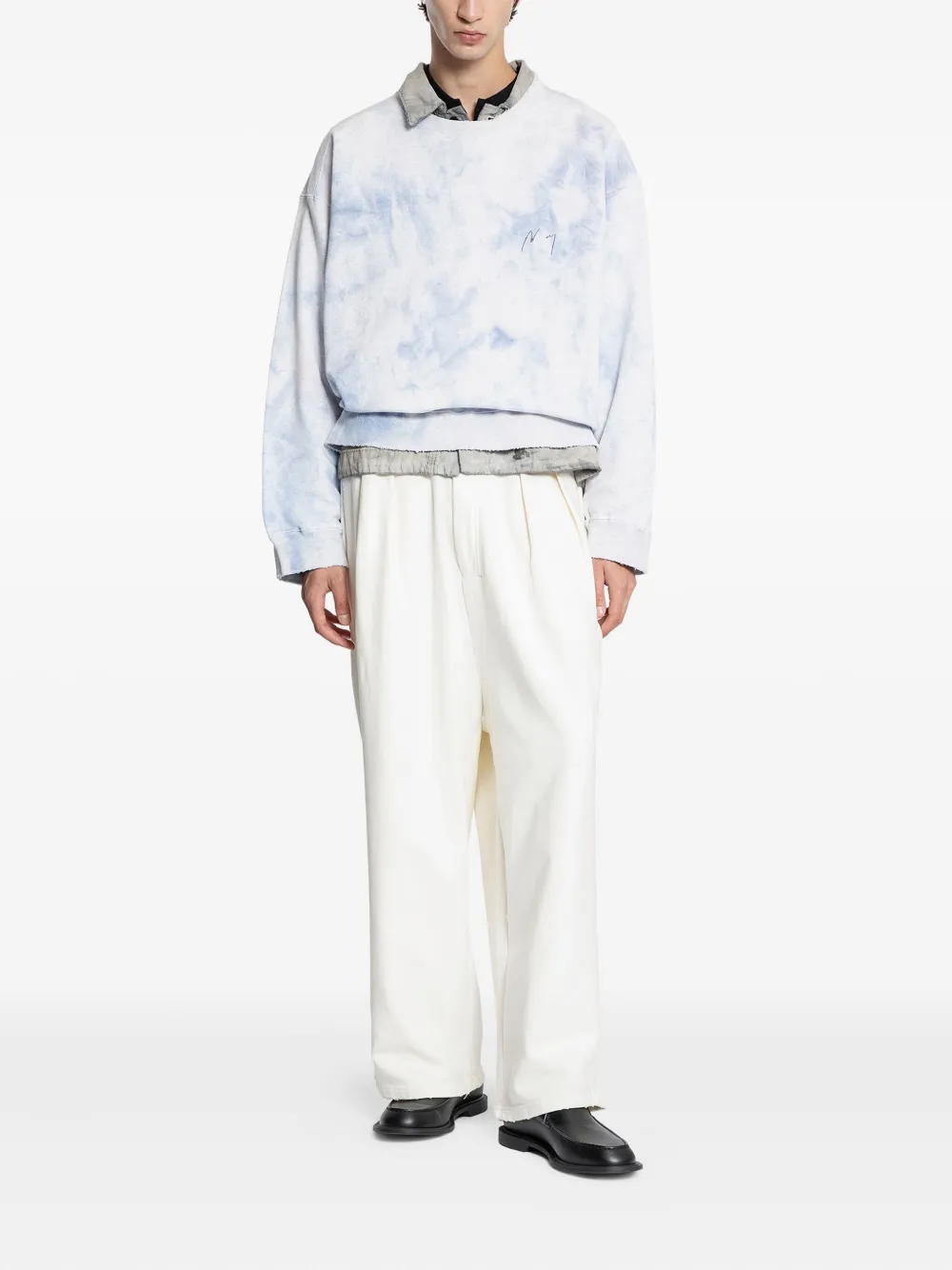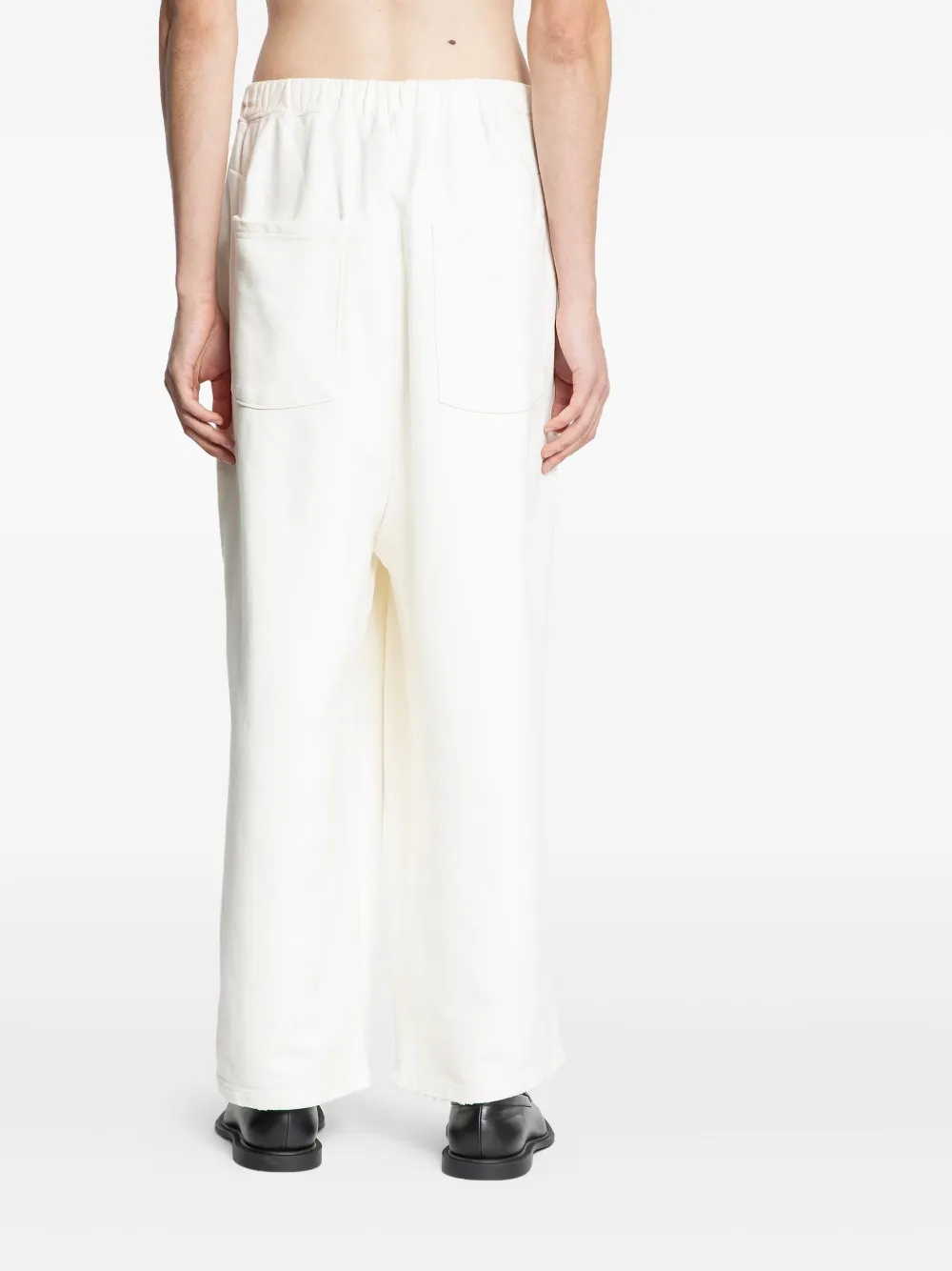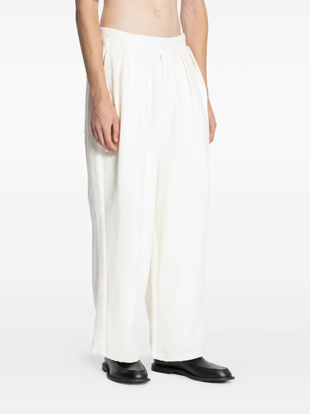 белый хлопок, эластичный пояс, складки, необработанный край, накладные карманы сзади