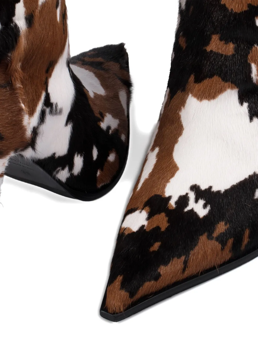 коричневая меховая текстура, острый носок, каблук 110 мм, ботфорты, узор по всей поверхности