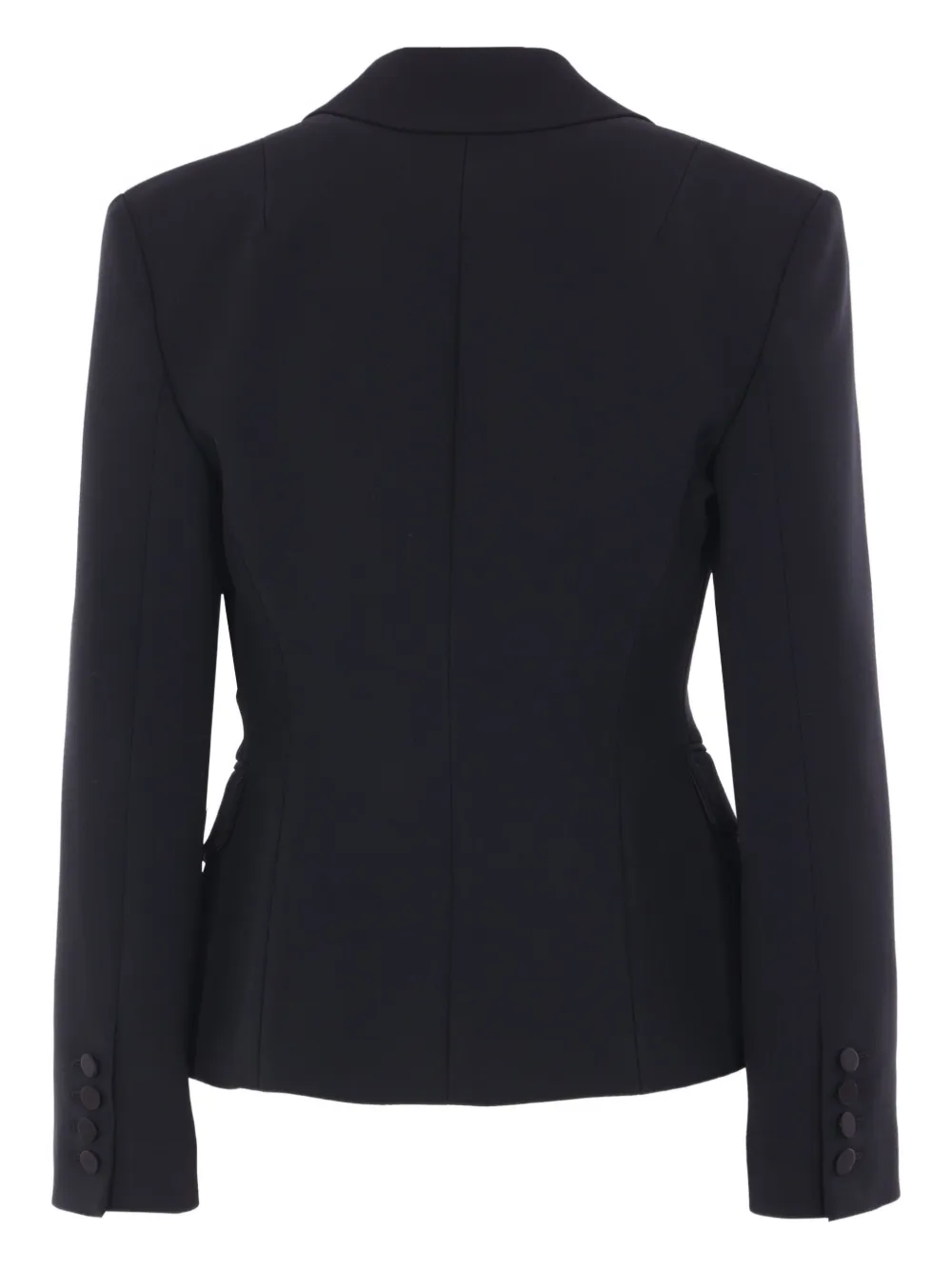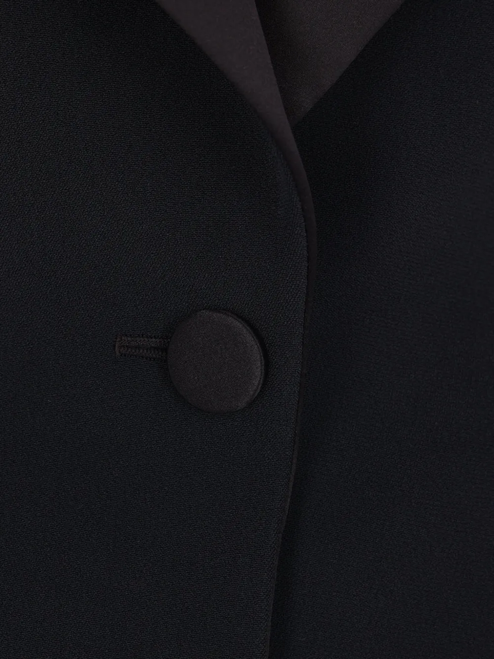 черный лацкан, застежка на пуговицы, передние карманы, манжеты на пуговицах